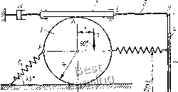 в варкгитах 2, 5, 7, 9, 10, 12, 17, 18, 23, 25 п 2G пружины с кощ-н\л\ппеи ЮМ жепкости с, в поло-кепнП покоя не деформнро-Еаны, в варна/iTax 13, 14, 19, 22, 24 м 27- 30 в ноложешт покоя НС дсфор\трсват; пр\;кпны с коь41ииисита.\и1 жесткости Су и с. Оире.пел1[ть: :(оф(1ициет сс, харакгориз\югций вязкое сопротивление, осицесчвляеыое в темифере, раииеипе вынужденных колебании системы при заданной частоте но;л1\ и сини; максимальные и резонансные значения алшлитул н:5?уснсп11Я обобн!,СЬтых координаты, скорости м \скорения с нредиололен!!!!, что частота возмущения .oжeт 1змспя1ься. Г1 р I) с1 I11 с Rn вяр1П111,1,\ ко icc. счшат!, ( п.i<iinni>i\in однородными ДН1..Л.\Н1, ПОР/КПН тонкими ()1И0р"1""; KtlCUJIC коле РрО1С>;оДИ I бет С1<0ЛЬ/"<С11ИЯ. Пример иыполксния задания. В,1чпслпть ко,-н!>финпснт а, характер;:.iyionuii г>я !кое coripm i.rneniie, ог\щ(Ч-твляе.мое в демпфере, ьклю-чеином в сис ему / -J в соответствии с рнс. 246. ![]() Рнс. 24G Определить уравнение вынужденных колебаний системы при задаинон частоте в()з.\1\1цения р. Найти также максимальные и рсзо иансные значения амплитуд изменеиин обобщенных: координаты, скорости и усксре1И1я. Дано: 20, пи--=5, /;г.,-=2, т-=9 кг; R0,3 м; / = 0,9 м; с, =40 Н/см; с, = 70 П/см, Р = 20 И; x = sinp/, Л =0,1 м, р--4л с 11 = 0,812. Обе пруж1:ны в положении покоя не деформированы. Р е ui с и и е. За o6o6uieHif мо косрдштату примем - угол поворота колеса / (рпс. 247). Уравнение Лагранжа в рассматриваемом случае имеет вид: d /д7 . дТ dt \<J \i Лр, " где Г -5ипетпческая ineprnfl г:н:тсМ1/; Ф -({лпкцмя рассеивания систем;-.! (дмсснпативиая ()yHKHHJi Гс,т;:>), - иотищнальная энергия системы; - обобн1,енная возмун1ак г,ая сила. функции Т, Ф и я вычисляются с точностью до величины второго порядка малости: Т и Ф - относительно обобщенной скорости ср,, /7 - относительно обобщенной координаты (р,. Общий вид этих функций следующий: Г=(1/2)-аф1; Ф=(1/2)-/7ф1; Я = (1/2)-Сфь где а и с - коэффициенты инерции и жесткости системы, а ft -коэффициент, характеризующий сопротивление в системе. ![]() Рис 247 Найдем кинетическую энергию системы как сумму кинетических энергий тел /, 2, 3 и 4. Т = Т, + Т, + Т, + Т,. Кинетическая энергия колеса / (сплошного однородного диска): T, = {l/2).mvl + {l/2)-Jc,.(i>l Vc, = R(ai, Jc,x = i\/2)-miR\ а1 = ц\. Ту = (1/2) • mi/?2(o1 -f (1/2) • (1/2) • mRl - (3/4) • т/Ч!. где т. е. Кинетическая энергия однородного стержня 2, движущегося поступательно: Та = (1 /2). mvl = (m,/2) • (со, • 2RY = 2mR<\. Стержень 3 совершает плоское движение. Мгновенный центр скоростей этого звена при его положении, совпадаютцем с положением покоя, находится в бесконечности. Следовательно, для обеспечения указан1юй выше точности выражения кинетической энергии системы можно считать, что сйа = 0 и Vc3 = vd = Vb = V2. Таким образом. Гз = (1 /2) • mvl = (1/2) • m-jvl = 2тз/?р!. Кинетическая энергия тонкого однородного стержня 4, вращающегося вокруг неподвижной оси Ох t, = (\l2)-j,xm, где j,x = i\i3)-mp; щ = vn/t = v.j[ = • 2r/1 = {2r/1) Ф1, т. е. ti = (1/2) • (1 /3). mj (irl) /р = (2/3) • mrifl Кинетическая энергия всей системы: Т = (3/4) т/фт + 22/41 + 2тз/?Ч + + (2/3) m4/?4i = (1 /2) [(3/2) • mi + А/щ + + (4/3) • рщ = = (1/2)-аф1, где коэффициент инерции системы а = [(3/2) mi + 4m.. + 4тз + (4/3) • m] rk Найдем функцию рассеивания системы: Ф = (1/2) • = (1/2). а {2рц:., = (1/2)4/?2аф1 = (1/2) • йф!, b = 4R-a. Переходим к определению потенциальной энергии системы. В положении покоя (ая/аф1)ф,о = о, поэтому в выражении для П су.м.ма всех членов первого порядка малости равна нулю. Это позволяет непосредственно производить определение потенциальной энергии системы, вычисляя только члены второго порядка малости. Найдем потенциальную энергию системы как сумму работ