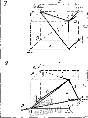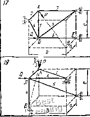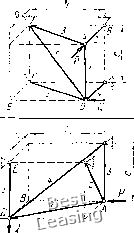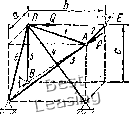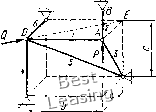 Совокупности сил Nn и Р,„п), Л ; и Р;,. образуют соответственно опорные реакции в точках D \\ Е. Рассмотрим теперь равновесие системы сил Ra, Хц, Уц, G н Р= = Ятах. приложенных КО всей системе (см. рис. 47): VX,=--0; Хп + Рп,е< = 0; VF. = 0; R,,-G + Y,r-.0; V м,п = 0; - /„ах • Ь/4 + G • й/2 - /?л. а = 0. Решая эти уравнения, получаем: /!----Яп,ах--0,4 кН; 0-а/2-Рп,ак-1>4 I .з о,4.0,Г, - = 0,467 кН; Уп = С- Ra - I - 0,467 = 0,533 кН. (6) (7) (8) II. Система сил, не лежащих в одной плоскости спсткмл сходящихся сил Задание С-8. Определение усилии в стержнях пространственной конструкции Найти методом вырезания узлов усилия в шести стержнях шарнирной-стержневой конструкции. Сила я"действует в направлении АВ, сила Q (в вариантах 2,4-6,8, 10-14, 16-25, 27, 29, 30) - в направлении DE. Схемы конструкций показаны на рис. 49-51, а необходимые для расчета даишие приведены в табл. II. Таблица 11 Номер варианта (рис 4U-51) Нагрузка, кН Размеры, м прямоугольного 1ы [)ллле-лепииеда 2 Л 4 .5 6 7 8 9 10 И 12 13 14 15