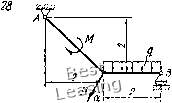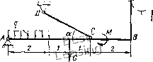 ![]() ![]() ![]() /"7 ![]() ![]() ![]() Ряс. и Пример выполнения задания. Дано: схема конструкции (рис. 12); G=10 кН; Я 5 кИ, М = 8 кНм- = 0,5 кН/м; a = 30 размеры - в м. Определить реакцию опоры А п реакцию стержня CD. Решение. Рассмотрим ![]() систему уравновенгиваюгцихся сил, приложенных к балке АВ. Отбрасываем связи: uiap-нирно-неподвижную огюру А, стержень CD и нить. Действие связей на балку заменяем их реакциями (рис. 13). Так как направление реакции шарннрио-неподвижион огюры А неизвестно, то определяем ее составляющие Ха и Тд. Покажем также реакцию Scn стержня CD и реакцию S нити, модуль которой равен Р. Равномерно-распределенную нагрузку интенсивностью q заменяем сосредоточенной силой Q, равной Q = 2- = 20,o = l кН и приложенной в центре тяжести эпюры этой нагрузки. Для плоской системы сил, приложенных к балке, составляем три уравнения равновесия: Рис. 12 ;---х Рис. 13 ЕМ,д = 0; - 1 -G-3 + Sc/,-4sin30"-M + S-6 = 0; SX,- = 0; - 5cD cos ЗО= 0; VK. = 0; y4-Q-G + ScDCOs60° + 5 = 0. (2) (3) Из уравнения (1) Sen = Q-l+G-3-hM~S-G 1.1 + 10.3 + 8-5.0 4 sin 30 4-0,5 = 4,5 kH. Из уравнения (2) Хл = Sen cos 30° = 4,5 • 0,866 = 3,90 кН. Из уравнения (3) V4 = Q + G-Scdcos60°-S = I+ 10-4,5-0,5-5 = 3,75 кН. Значения Ха, У а, Scd получаются положительными. Это указывает на то, что принятые направления этих сил совпадают с их действительными направлениями. Задание С-3. Определение усилий п стержнях плоской фермы способом Риттера Hafmi способом Риттера усилия п стержнях /, 2, 4, 5 фермы. Схемы ферм представлены на рнс 14 - 16, а нагрузка указана в табл. 3. Таблиц л 3
