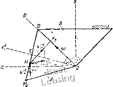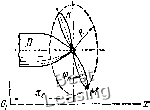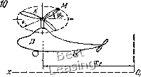Вектор 8 приложен в точке О н направлен перпендикулярно к плоскости zOQ. Следовательно, ось углового ускорения ОЕ совпадает с осью Оу. 3. Определение скорости точки тега. Скорость точки М определяем как вращательную скорость вокруг мгновеинол оси: v „ = МК •« = MD cos 30° 6); MD = 21 sin 30° - ММ - 2 30 • 0,5 - 10 = 20 см; Уж = 20 • 0,866 2,32 = 40,2 см/с. Вектор Vm. параллелен вектору vq и имеет одинаковое с ihim направление (см. рис. 111). 4. Определение ускорения точки тела. Ускорение точки М находим как геометрическую сумму осестремителыюго и вра-И1ательного ускорений: Осестремительное ускорение направлено по перпендикуляру к мгновенной оси вращения (рис. Н4) Юм == МК-2 со* = = AiD.cos 30°-0)* = = 20 0,860. 2,32* = 93,3 см/с*. р,;с 114 ![]() Вращ,ательное ускорение направлено перпенд>[1;уляр1Ю к 0/Л в плоскости гОа, как показано на рнс. 114, w\i = ОМ е; ОМ = Y+ (.оМ) - 2/ Л1оЛ1 • COS 60° = = V900 + 100 - 2. 30 10.0,5 = 26,5 см; =26,5-1,97 = 52,2 см/с*. Обе соста!зляю1иие расположены в плосчсстн 20а(гОл). Величину т.ц найдем как д;1агона;)ь параллелограмма, псстроеимого на этих составляющих: Wm - V{w%f + {w:iY - 2и11 и», cos v; COS V = COS KiOM = /-ЛШ- srr.30 .30 -20 0,5 26.5 = 0,75; да.и = I 93,3- + 52,2* - 2 • 93,3 52,2 0.75 = \ 4125 = 64,2 см/с*. 5 г [) q.j-:),ic.4oro Л Л. 129 III. Сложное движение СЛОЖНОЕ ДВИЖЕНИЕ ТОЧКИ Задание К-9. Определение абсолютной скорости и абсолютного ускорсиня точки в случае поступательного переноспого двпжепвя По заданным уравнениям относительного движения точки М и переносного движения тела D для момента времени t~ti определить абсолютную скорость и абсолютное ускорение точки М. Схемы механизмов показаны на рис. П5-117, а необходимые для расчета данные приведены в табл. 39. Пример выполнения задания. Дано: схема механизма (рис. 118): 01 = 02 = 20 см; /? = 16см; ф = (5/48) л/-» рад; Sr=-AM nt"" см; ti = 2c. Решение. Найдем положение тела D и точки М в заданный момент времени. Положение тела D определяется углом ф. При t = 2 с Ф = (5/48)л 2 = (5/6) л рад. Положение точки М на теле D можно определить углом При = 2с а = л-22/16 = л/4 рад. Тело D и точка М в заданный момент времени показаны на рис. 119. Абсолютную скорость точки М определяем как геометрическую сумму относительной и переносной скоростей: Модуль относительной скорости точки М Здесь 5 -проекция относительной скорости на касательную к траектории относительного движения о, = dsr/di = 2л/. При / = 2 с £> = 2л-2 = 4л = 12,6 см/с. Следовательно, Vr= 12,6 см/с. Положительный знак Vr показывает, что относительиое движение точки происходит в направлении положительного отсчета s. Вектор относительной скорости показан на рис. 119. Переносную скорость определяем, учитывая, что Vea, Va=OiAw, где со -модуль угловой скорости звена ОА. 130 ![]() ![]() / /, , у /. ---X ![]() ![]() оУштт/ттшшттш---