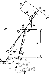 При решении задачи тело принять за материальную точку; сопротивление воздуха не учитывать. Вариант 1, Дано: а = 30"; Va=0; / = 0,2; / = 10м; Р = 60°. Определить т и /г, Вариа1[т 2. Дано: сс=15°; У4 = 2м/с; / = 0,2; /i = 4m; Р = 45 Определить / и уравнение траектории точки на участке ВС. Вариант 3. Дано: сс = 30°; va = 2,5 м/с; / = 0; / = 8 м; d = 10 м; Р = 60°. Определить Уя и т. Вариант 4. Дано: Va = 0; -и = 2 с; / = 9,8 м; = 60°; / = 0, Определить а и Г. Вариант 5. Дано: а = 30°; = 0; / = 9,8 м; т = 3 с, р = 45°. Определить f и v. Варианты 6-10 (рис. 137, схема 2). Лыжник подходит к точке Л участка трамплина АВ, наклоненного под углом а к горизонту и имеющего длину /, со скоростью уд. Коэффициент трения скольжения лыж на участке АВ равен /. Лыжник от Л до В движется т с; в точке В со скоростью vg он покидает трамплин. Через Т (с) лыжник приземляется со скоростью vc в точке С горы, составляющей угол р с горизонтом. При решении задачи принять лыжника за материальную точку и не учитывать сопротивление воздуха. Вариант 6. Дано: а = 20°; / = 0,1; т = 0,2 с; /г = 40 м; р = = 30°. Определить / и vc. Вариант 7. Дано: а=15°; / = 0,1; Ул = 16 м/с; / = 5 м; р = = 45". Определить Vb и Т. Вариант 8, Дано: Va21 м/с; / = 0; т = 0,3с; ид = 20 м/с; Р = 60. Определить and. Вариант 9. Дано: а--15°; т = 0.3 с; / = 0,1; /1 = 302 м; Р = 45°. Определить Уд и va. Вариант 10. Дапо: а =15°; / = 0; Va = 12 м/с; d = 50 м; р = = 60°. Определить т и уравнение траектории лыжника на участке ВС. Варианты 11-15 (рис. 137, схема 3). Имея в точке Л скорость Ул мотоцикл поднимается т с по участку А В длиной /, составляющему с горизонтом угол а. При постоянной на всем участке А В движущей силе Р мотоцикл в точке В приобретает скорость Vn и перстетает через ров шириной d, находясь в воздухе Т (с) и приземляясь в точке С со скоростью Vc. Масса мотоцикла с мотоциклистом равна т. При решении задачи считать мотоцикл с мотоциклистом материальной точкой и не учитывать сил сопротивления движению. Вариант 11, Дано: а = 30°; РфО; 1 = 40 м; va = 0: vb = 4,5 м/с; d = 3 м. Определить т и /i. Вариант 12. Дапо: а = .30°; Р = 0; / = 40 м; ув = 4,5 м/с; /г =1,5 м. Определить va и d. Вариант 13. Дано: а = 30°; т = 400 кг, Va=0; т = 20 с; d = = 3 м; /г= 1,5 м. Определить Р и /. Вариант 14. Дано: а = 30°; т = 400 кг; Я = 2,2 кН; Ул = 0; /=;40 м; d = 5 м. Определить vn и vc- Вариант 15. Дано: а = 30°; va = 0; Я = 2 кН, / = 50 м; Л = 2 м; d--=4 м. Определить Т и т. Ifi-20 (рис. 137, схейа 4). Камень скользит в течение т с по участку АВ откоса, составляющему угол а с горизонтом н имеющему длину /. Его [1ачальная скорость v. Коэффициент трения скольжения камня по откосу равен /". Имея в точке В скорость камень через Т (с) ударяется в точке С о вертикальную защитную стену. При решении задачи принять камень за материальную точку; сопрошвленис воздуха не учитывать. Вариант 16. Дано: а = 30- у, = 1 м/с; / = 3 м; /-=0,2; =-- 2,5 м. Определить li и Т. Вариант 17. Дано: а = 45; / = 6 м; Va 2; т = 1 с; /г - 6 м. Определить d и /. Вариант 18. Дано: а = 30°; / = 2 м; Ул = 0; / = 0,1; d = 3 м. Определить ft и т. Вариант 19, Дано: а =15; / = 3 м; /j -3 м/с, /0; т = = 1,5 с; d - 2 м. Определить Уд и h. Вариант 20. Дано: а = 45, г)л = 0; / = 0,3; <i = 2 м; /( = 4 м. Определить / и т. Варианты 21-25 (рис. 137, схема 5). Тело движется из точки А по участку АВ (длиной /) наклонной плоскости, составляющей угол а с горизонтом. Его начальная скорость и,,. Коэффициент трения скольжения равен /. Через т с тело в точке В со скоростью Уд покидает наклонную плоскость и падает на гори.зонтальную плоскость в точку С со скоростью vc\ ири этом оно находится в воздухе Т с. При решении задачи принять тело за материальную точку и ие учитывать сопротивление воздуха. Вариант 21. Дано: а-=ЪУ\ / = 0,1; = 1 м/с; т = 1,