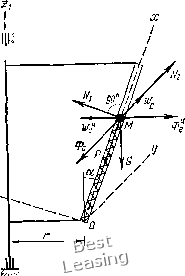 о» ляется его движение вдоль трубки. Б случае, когда переносное дви-же[!ис является равномерным вращением, относительное движение точки определяется уравнением К гиарику М приложены силы: вес G, реакция пружины Р и нормальная реакция стенки трубки; эту реакцию .можно разложить па две взаим1ю перпендикулярные составляющие и N. Присоединяем к силам, действующим на шарик М, переносную центробежную силу инерции и кориолнсову силу инерции Фс, направленные противоположно ус-корения.м и w. Направление ускорения Wc найдем по извест1ю-му правилу, предположив, что проекция относительной скорости Vr на ось X положительна. В рассматриваемом примере кориолисова сила инерции (с параллельна оси у и перпендикулярна к тоскости хОг (рис. 150). Модули сил инерции определяются по формулам: Фтюс = 2т(Ле0г sin а, где Рнс. 150 Основное уравнение относительного движения в данном случае имеет вид: Inwr=--G + P + N + N,+Фi + Фc. (1) Составим дифференциальное уравнение относительного движения шарика М вдоль оси х: тх = = Фе sin а - О cos а - Р; тх = /пш {г-\-х sin а) sin a - mg cos а - с(х - /о) (реакция пружины Р равна произведению коэффициента жесткости на величину деформации пружины). Последнее уравнение представим в виде X + {с/т - (0 sina) х = sin сг - g cos а -f clo/tn, (2) Общее решение нолучсииого дифференциалыюго уравнения (2) имеет вид х=х -\-х**, ![]() где л-общее решение соответствующего одиородрюго уравнения; х- - частное решение уравнения (2). Составим характеристическое уравнение и найдем его корни: X + c/m-Msina =0; Xi = /wsin2a-r/m = Kn-0,o- 1/J,01 = 9,876г. ?.., = -9,876i. Таким образом, общее решение однородного уравнения л* = Cj cos 9,876/ + Са sin 9,876/. Частное решение уравнения (2) находим в форме jt** = В. Из дифференциального уравнения (2) x** = Я = sin ос -g соз а + с/р/т с/т -(osina я2.0,20,5-9,81 •0,86G + (l,0-0,2)/0,01 , „п = 1,0/0,01-л2. 0,55 и, 1М. Решение дифференциального уравнения (2) относительного движения шарика М получает вид л = Ci cos 9,876/+ С2 sin 9,876/+ 0,128 (м). (3) Скорость этого движения i = -9,876CiSin 9,876/+ 9,876С2 cos 9,876/ (м/с). (4) Постоянные Q и Са определяем, используя начальные условия: при / = 0 Хо = 0,3 м, Хо = 2,0 м/с. Составим уравнения (3) и (4) для / = 0: Xo = Ci + 0,128; io = 9,876C2, откуда <:i = 0,3-0,128 = 0,172; Q = 2/9,876 =0,202. Уравнение относительного движения шарика М приии.мает вид X = 0,172 cos 9,876/ + 0,202 sin 9,876/ + 0,128 (м). Скорость относительного движения шарика х = -1,69 sin 9,876/+1,99 cos 9,876/ (,м/с). Для определения составляюш,нх реакции стенки трубки Ni и /"2 при = т = 0,2с выразим векторное уравнение (1) в проекциях на оси у и Z. Учитывая, что вектор Wr перпендикулярен к этим осям, получаем: О = Л/о - Ф„ О = Л/i - G cos 60" - cos 30 0 1 2 3 4 5 6 7 8 9 10 11 12 13 14 15 16 17 18 19 20 21 22 23 24 25 26 27 28 29 30 31 32 33 34 35 36 37 38 39 40 41 42 43 44 45 46 47 48 49 50 51 52 53 54 55 56 57 58 59 60 [ 61 ] 62 63 64 65 66 67 68 69 70 71 72 73 74 75 76 77 78 79 80 81 82 83 84 85 86 87 88 89 90 91 92 93 94 95 96 97 98 99 100 101 102 103 104 105 106 107 108 109 110 111 112 113 114 115 116 117 118 119 120 121 122 123 124 125 126 127 128 129 |