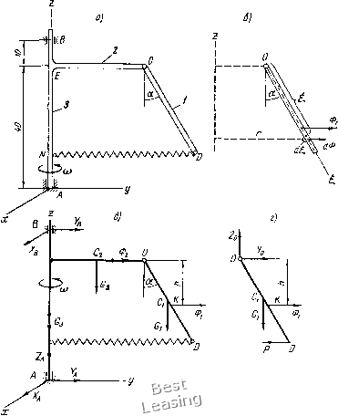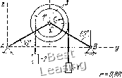 mj = 20 W2 ![]() /7>j = 0.2 m, ![]() r=D,8R ![]() R=Zr ![]() тз=0,2п1, (0 N ![]() AO=l=OU OB =0,21 ![]() Pi!c 200 по формуле Ф* = - mwc, где ш -масса тела, а Шс -ускорение центра тяжести тела. ![]() Рис. 201 Равнодействующая сил инерции точек тела равна их главному вектору. Поэтому для стержней / и 2 Фу = miuUc, = mi(o- (0,5/1 sina -f 4); Ф2 = tnwc = ШпСй 0,5/2. Для определения реакций опор необходимо знать точку приложения силы Фу (линия действия силы Фг совпадает с осью стержня 2 и поэтому определена). Так как сумма моментов параллельных сил Таблица 56