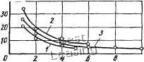 дующие недостатки: срок службы спроектированных передач 7000-10 ООО ч, что для многих передач является чрезмерно высоким; при отсутствии ограничений на габариты передачи параметры спроектированной передачи не всегда будут оптимальными. Для проектирования цепных передач с оптимальными параметрами в один этап необходимо и достаточно выразить допускаемое давление [р ] в шарнире через срок службы передачи С и основные геометрические параметры цепного контура (А, t, ы, V, zi и т. д.). Для приводной роликовой цепи допускаемое давление [р ] в шарнире определяют в соответствии с преобразованными выражениями (63) и (68) гл. 2 при ку = = 1 в виде функции срока службы цепи С по износостойкости шарнира где ken ~ коэффициент срока службы цепной передачи; 435 ООО knkmkci [р],МПа ![]() ксл = (42) V,M/C Гнс. 13. Зависимость допускаемого давления в шарнире цепи ПР-?5,4-5000 от скорости движения цепи, способа смазки и требуемого срока службы при = 50; г, = 16; U = 2,5; в, = 2.6%: 0,5; 2 - при 3 ». при С = 1 - при С = С = 5000 ч; 2500 ч; k = 1.6; 10 ООО ч; h Для обеспечения меньшего значения шага цепи / необходимо стремиться к максимальной величине допускаемого давления \р], которое существенным образом зависит от правильного выбора способа смазки (рис. 13). После подстановки (41) в выражение (35) получают уравнение kvcifon ч 0 /«q\ ЮООЛв Полученное выражение для определения несущей способности цепи позволяет по табл. 1 гл. 1 подобрать цепь оптимального шага при любом варианте заданных исходных данных. Выбор шага роликовой цепи по диаметру Dei меньшей звездочки. Подставив выражение (36) в уравнение (43) и решив его относительно геометрической характеристики цепи Fi (f), получим .(oFonr.;/:. (44) «0«сл у Ад V «1 По геометрической характеристике цепи Fi (Q выбирают цепь (табл. 10), а затем определяют ее основные геометрические размеры, разрывное усилие и массу 9 одного метра (см. табл. 1 гл. 1). Выбор шага приводной цепи по числу зубьев меньшей звездочки. Скорость движения цепн v связана с числом зубьев Zi меньшей звездочки зависимостью 60 000 (45) Вьфазив в уравнении (43) скорость v через число зубьев г, меньшей звездочки и решив его относительно геометрической характеристики цепи (i), получим (46) 10. Геометрические характеристики F, it) и Fj (О приводных роликовых и втулочных цепей по ГОСТ 13568 - 75
