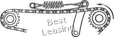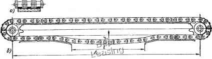 ![]() применять в быстроходных цепных передачах. Практика эксплуатации цепных передач показывает, что замена жестких винтовых натяжных устройств натяжными приспособлениями с винтовыми пружинами дает возможность увеличить срок РИС. 3. натяжная лента с винтовой пружиной службы цепИ в 1,2-1,5 раза, Применение таких приспособлв нии рекомендуется для цепных передач при скорости движения цепи d > 2 м/с. Они особенно эффективны в цепных передачах, расположенных в горизонтальной плоскости. В этих приспособлениях применяют винтовые и спиральные пружины, соединяемые с регулируемой звездочкой различными устройствами (рис. 22). Для натяжения цепи применяют также спиральные плоские пружины без звездочек, нажимающие своим свободным концом иа звенья цепи в направлении ее движения (рис. 22). Для двух- и многорядных цепных передач используют натяжную ленту с винтовой пружиной (рис. 23). Такое устройство может быть использовано и как антивибрационное. Натяжные ленты, как и пружины, пригодны для передач с цепями типа ПР с шагом до 19,05 мм включительно и с цепями типа ПРД с шагом до 31,75 мм. Стальная лента, которая одним концом закреплена жестко, а другой ее конец закреплен на откидном рычаге, прижата пружиной растяжения к пластинам ведомой ветви. Хорошо зарекомендовали себя натяжные ленты, футерованные пластмассой. В этом случае пластины цепи не трутся о стальную ленту, потому что ролики катятся по фасонному профилю из маслостойкой резины или пластмассы. Срок службы передачи при таком исполнении значительно увеличивается. Антивибрационные и направляющие приспособления. В цепных передачах, работающих при неспокойной или ударной нагрузке, в ведущей ветви может возникать вибрация. Для таких случаев следует предусматривать при проектировании антивибрационные приспоссбления в виде плапок из упругого материала или из пластмасс. Такие планки устанавливают вплотную над ведущей ветвью цепи. При плавном ходе планка не работает, но при возникновении поперечной вибрации пластины или ролики цепи соприкасаются с планкой и вибрация гасится. По мере удлинения цепи необходимо регулировать планки по высоте. Для цепных передач с большими межцентровыми расстояниями (Л > 80), работающих при небольших скоростях, следует применять опорные звездочки, ролики или направляющие планки (рис. 24, а), чтобы уменьшить натяжение, вызванное собственным весом. I Гногда такие планки делают из двух частей (рис. 24, б). Между ними посредине оставляют 6-10 звеньев для саморегулирования натяжения цепи за счет провисания холостой ветви. Устройство крепят к стенке машины. Цепной контур с упругой звездочкой. Наряду с регулировкой натяжения упругий венец выполняет роль демпфера, благодаря чему снижаются динамические нагрузки и вибрации, повышается износостойкость шарниров цепи и зубьев, а также плавность хода передачи. Особенностью натяжного устройства является упругий зубчатый венец, который одновременно сцепляется с двумя ветвями цепи - ведущей и ведомой (рис. 25, а). Стремясь восстановить свое первоначальное положение, зубчатый венец натягивает обе ветви цепи (рис. 25, б). Благодаря тому, что ведущая и ведомая ветви цепи движутся в противоположных направлениях с одинаковыми средними скоростями, натяжной венец вращается вокруг своей условной оси без поступательного перемещения вдоль лин