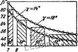 Выбор основного профиля с учетом технологии формообразования зубьев При конструировании звездочек необходимо учитывать технологию формообразования зубьев. Профиль зуба обусловливает трудоемкость изготовления профилировочных инструментов и самих звездочек, себестоимость их изготовления и производительность формообразования зубьев. По ГОСТ 592-75 можно выбрать оптимальный профиль зуба и связанные с ним параметры с учетом принятого способа профилирования, а для формообразования зубьев с профилем по ГОСТ 591-69 способом радиальной штамповки или способом копирования дисковой фрезой требуется для каждого числа зубьев иметь свой профилирующий инструмент, так как угол впадины является переменным и определяется в зависимости от числа зубьев: a = 55°-i2!-. Путем группирования углов впадины можно значительно сократить разнотипность и число профилирующих инструментов, не снижая оптимальности профиля зуба. Такая группировка предусмотрена в ГОСТ 592-75. Угол впадины Р и угол заострения зуба 2у по ГОСТ 592-75 взаимосвязаны: P=2v+a,. (24) Половина угла заострения у принимается из условия свободного выхода цепи из зацепления с зубьями звездочки: у > l,2arctg i, где [х - коэффициент трения-скольжения в паре ролик цепи - зуб звездочки. При коэффициенте трения, равном 0,15, угол •утшДолжен быть не менее 10° 30. Максимальное значение угла Ymax принимается из условия снижения ударных нагрузок в момент вхождения элемента цепи в зацепление с зубьями звездочки, которое зависит от угла давления ролика цепи на зуб звездочки яр. Максимальное значение угла у ие должно превышать 20° [3]. Варьируя углом у, целесообразно для унификации инструмента угол впадины Р принимать постоянным в возможно большем интервале зубьев. С учетом этого максимальное и минимальное числа зубьев принимают по зависимостям 2mln = 360° P~-2v„ax 360° Р -2Vn>in (25) На рис. 15 представлено решение системы (25) в диапазоне оптимальных значений угла у = 14-=- !8°. При проектировании унифицированного инструмента для изготовления зубьев способом копирования необходимо наряду с постоянным углом впадины обеспечивать идентичность профиля впадины по всем остальным размерам: высоте ножки зуба й„, радиусу впадины г, смещению центров дуг впадины ё, высоте прямолинейного профиля зуба fir и радиусу закругления головки зуба г. Рис. 15. Диаграмма для выбора уиифиииро-ваииого угла впадииы р и интервалов числа зубьев г с унифицированной формой впадины в диапазоне значений половины угла заострения зуба V = 14-м 8° ![]() fS ts 17 19 Hi Высота ножки зуба Ан возрастает с увеличением числа зубьев. В интервале чисел зубьев с постоянным углом Р она возрастает почти на 0,01/. Но поскольку ГОСТ 592-75 допускает отклонение высоты ножки зуба, которое значительно больше ее изменения в интервале чисел зубьев с Р = const, высоту ножки зуба можно принять постоянной и равной высоте ножки зуба звездочки с максимальным числом зубьев в интервале Дг шах max С учетом этого диаметр окружности впадин звездочек, изготовленных унифицированным инструментом, = rf«-2H = rf„-rf„,„ax + .max. Расположение центров дуг впадин для улучшения зацепления и в целях экономии металла следовало бы предусматривать с максимальным смещением. Однако при изготовлении звездочек радиальной штамповкой с увеличением смещения уменьшается компенсационный объем в вершине зуба и увеличивается смещенный объем в