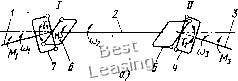§ 24. ПРОЕКТИРОВАНИЕ КАРДАННОГО ПРИВОДА При проектировании карданного привода прежде всего выбирают кинематическую схему передачи. Основные агрегаты передачи должны располагаться таким образом, чтобы угол взаимного отклонения осей двух валов, сопрягаемых карданным шарниром, был не более 10°. Для промышленных и маневровых локомотивов, работаюш,их на кривых малого радиуса, допускают увеличение этого угла до 15°. При отсутствии взаимной подвижности сопрягаемых карданным валом узлов для нормальной работы подшипников качения угол в шарнирных соединениях принимают не менее 3°. После выбора кинематической схемы рассчитывают тягово-экономические характеристики, в результате чего определяют общее передаточное число механической части (коробки передач, раздаточного и осевого редуктора). На основании технических и эксплуатационных требований, а также возможностей производства распределяют общее передаточное число между отдельными агрегатами. Затем рассчитывают основные элементы карданного привода. Срок службы карданного вала по основным элементам (подшипники, шлицы) до капитального ремонта для магистральных тепловозов и дизель-поездов должен составлять не менее 0,9 -10 км пробега и для маневровых тепловозов не менее 9 лет при вероятности безотказной работы 0,9. В осевых и раздаточных редукторах подшипниковые узлы до замены должны обеспечивать пробег локомотивов 10 км. Выбрав тип подшипников и определив их коэффициенты работоспособности, по каталогу подбирают серию и размер подшипников в зависимости от посадочных диаметров валов. Для повышения работоспособности зубчатых колес редукторов, изготовленных из легированных сталей 18ХГТ, 35ХГТ, 45ХН, 12Х2Н4А, зубья подвергают термообработке и пластической деформации поверхностного слоя специальными накатками.Валы редукторов должны обладать определенной жесткостью, при которой обеспечивается нормальное зацепление зубчатых колес без перекоса. Схемы нагружения валов обусловлены выбранной схемой редуктора. При расчете на прочность элементов карданного привода основным этапом является выбор расчетных режимов нагружения. В результате испытаний локомотивов с карданным приводом было установлено, что при трогании с места и движении в режиме тяги с малыми скоростями возможно буксование колес. Во время буксования в приводе возникают динамические моменты, в 2-3 раза превосходящие наибольший момент по сцеплению колес с рельсами. Буксование не является рабочим режимом тепловоза, и действие его кратковременно, однако для обеспечения прочности ![]() ![]() Рис. 96. Кинематические схемы: а - карданного привода; б - карданного шарнира; / - ведущий вал; 2 - промежуточный вал; 3 - ведомый вал; 4 - 7 - вилки;/ и /7 - шарниры элементов карданного привода необходимо эти нагрузки учитывать при расчете на прочность. Кинематика карданного привода. Для работы карданных валов большое значение имеют установочные углы их наклона валов (рис. 96, а). Особенность кинематики карданных валов заключается в том, что передаточное число валов изменяется в пределах одного оборота вала. Для синхронного вращения ведущего вала / и ведомого 3 необходимо, чтобы вилки 5 и 5 лежали в одной плоскости, а углы перелома 7 и 72 были равны и тоже лежали в одной плоскости. Рассмотрим кинематику шарнира / (рис. 96, б). За исходное положение ведущего ва