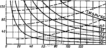 Сопоставляя выражения (20) и (21) с выражениями (22) и (23), найдем, что при равенстве углов 7i и 72 в любой момент времени = 63 и coi = щ. При 7 =f 72 передаточное число изменяется от Xjnin = cos 7i/cos 72 до = cos 72/cos 7i, в результате чего на вал и связанные с ним элементы действуют крутильные колебания. Если 7i = 72, то X = 1. Такая установка валов возможна только при статическом положении всех элементов привода колесных пар. На самом деле углы наклона карданного привода зависят от условий движения по прямым и кривым участкам пути. При вписывании, например, в кривые этот угол в горизонтальной плоскости может достигать 10-11°. Угол наклона карданного вала также изменяется при вертикальных колебаниях надрессорного строения. Величина его во многом зависит от длины и расположения реактивной тяги. Для уменьшения изменения угла наклона целесообразно располагать реактивную тягу горизонтально и длину ее принимать по возможности максимальной. Расчет на прочность элементов карданного вала, ВНИТИ разработана методика расчета на прочность редукторов и карданных валов главного привода тепловозов, по которой учитывается распределение режимов работы по тяговым и динамическим нагрузкам в течение всего срока службы привода. По этой методике сначала определяют характеристики работоспособности элементов привода и по ним подбирают соответствующие зубчатые колеса, подшипники, карданные валы. Исходные данные определяют для обобщенного типового профиля железнодорожного пути (табл. 11). Необходимую для расчетов скорость движения локомотива на соответствующих элементах профиля пути определяют по графику (рис. 97) в точках пересечения кривых удельной силы тяги и кривых удельного сопротивления поезда Wo на соответствующих элементах вертикального профиля пути. На уклонах скорости приняты равными конструкционным: = = 1,261)3. Удельная сила тяги /„= 1,36(Ре/"п)Л2700/у), 148 ![]() по V, km/v Рис. 97. Зависимости удельнойснлы тяги и удельного сопротивления поезда от скорости движения: сплошные линии - штриховые - где Ре - полная (номинальная) мощность дизеля, кВт; - масса поезда, включая и локомотив, т; ku - коэффициент передачи мощности к колесным парам, = кц; к - коэффициент, учитывающий расход мощности на вспомогательные нужды локомотива и равный 0,9-0,95; г\ - КПД передачи и трансмиссии. Для тепловозов с гидропередачей мощностью по дизелю 550 кВт и более можно принять к = 0,75; для тепловозов мощностью менее 550 кВт к = 0,65-=-0,7. Сопротивление поезда, Н/т, w = = 120 + i, где - удельное сопротивление поезда, соответствующее сопротивлению четырех-шестиосным вагонам при некоторой средней их загрузке и равное 14,1 + 0,0875у + 0,00221t) Коэффициенты работоспособности элементов карданного привода определяют по формулам, приведенным в табл. 12. Они представляют собой развернутые выражения следующих зависимостей: Аьь = FINe = const; Ли = FrNe = const; гн = сГн/£ = const; Azp = е = const; Aq = MN e = consX. Здесь F, a и M - эквивалентные нагрузки, характеризующие работоспособность данного узла: нагрузка на подшипник, контактные и изгибные напряжения в зубьях колеса, крутящий момент; Л£ - число циклов нагружения, соответствующее эквивалентным нагрузкам. «Системой» дизеля считают часть привода, механически связанного с дизелем, а «системой» колеса - часть привода, механически связанного с колесными парами локомотива. Допускаемые коэффициенты работоспособности для подшипников 