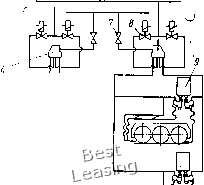 пул 13 Т 0 (TWTU-Г 10 - 3-[iIH3HZ]~4Z]-r~[ZW!Z Рнс. 145. Структурная схема воздуховода автоматической системы управления: 1 - питательная магистраль тормозной системы; 2 - фильтр; 3 - клапаны максимального давления; 4 - поездной контактор; 5 - электропневматические вентили; 6 - манометр; 7 - реверсор; & - групповые контакторы; 9 - патрубок для обдува генератора и высоковольтных камер; 10 - краны; - стеклоочистители; 12 - клапаны сифонов и свистка; 13 - тифон: 14 - свисток; 15 - регулятор давления; 16 - пиевмоцилиидр; /7 - патрубок для обдува холодильника магниты, широко применяющиеся в цепях локомотивов, непригодны, так как развиваемая ими сила резко изменяется даже при относительно небольшом перемещении. Мощные электромагниты дороги и потребляют много электроэнергии. Пневматический привод позволяет получать большие силы, не изменяющиеся в зависимости от времени и перемещений при малой затрате цветных металлов и небольшом расходе электроэнергии. Системы воздухопроводов управления отечественных тепловозов в принципе одинаковые. Сжатый воздух из питательной магистрали / тормозной системы тепловоза (рис. 145) через фильтры 2 и разобщительный кран 10 поступает к приборам (тифоны 13, свистки 14, стеклоочистители цилиндры 16 открытия жалюзи, муфта вентилятора, привод автосцепки и др.), питающимся воздухом под давлением 0,7- 0,9 МПа. Для работы этих приборов нет необходимости точно выдерживать давление в воздушной магистрали. Для целого ряда приборов (электропневматические вентили песочной системы, контакторы, вентили дистанционного управления тормозом, контроллер, реверсор и др.) давление и точность его поддержания являются решающими в работе. Питание этих приборов осуществляют через клапан максимального давления 3, отрегулированный на поддержание давления 0,55-0,6 МПа и контролируют манометром 6. Система имеет патрубки 9 и 17 для отбора воздуха при обдуве холодильника, главного генератора и высоковольтных камер. На электровозах часть системы, связанная с управлением работой дизеля, отсутствует. Зато имеются другие элементы, например пневматический привод пантографа. На электровозе ВЛ80 сжатый воздух используют в устройстве для догрузки крайних осей секций электровоза. Оборудование воздушной системы автоматики. Основным элементом большинства пневматических приводов является закрытый с одной стороны цилиндр с поршнем. Сила создается сжатым воздухом и реализуется при его перемещении. Сложные пневматические приводы имеют несколько цилиндров. На локомотивах применяют также и диафрагменный привод. Впуском и выпуском сжатого воздуха в пневматический цилиндр привода управляют при помощи электропневматических вентилей. Вентили устанавливают на приводах реверсора и электропневматических контакторов, на меха- Компрессоры предназначены для обеспечения локомотива и ведомого им состава сжатым воздухом, необходимым для систем торможения, управления, противопожарной и песочной автоматики, а в некоторых случаях для пуска дизеля. Как правило, на локомотивах с автономной энергетической установкой на одну секцию устанавливают один компрессор. Электровоз кроме основных (главных) компрессоров имеет вспомогательные, предназначенные для подъема пантографа и включения главного выключателя при отсутствии воздуха в главных резервуарах. Особенность работы локомотивного компресс