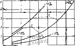 Приближенно касательную мощность проектного локомотива можно оценить по графику (рис. 160). Эффективную мощность (в кВт) - основной энергетический параметр автономного локомотива, равный мощности его силовой установки, определяют по выражению Р, = РМс, где Tin - КПД передачи, % = 0,77 для гидропередач, Tin = 0,8 для электрических передач; - коэффициент свободной мощности. p/iMi0).<st/t Рис. 160. График зависимости удельной мощности Рк/тг (я) / - для пасеажкрского дви-женкя; 2 - для грузового движения ![]() W SO ВО т /го по ш ¥,km/v Коэффициент Рд учитывает на локомотивах расход энергии 1 йа привод: вентилятора холодильной установки, вспомбгат&дьных йашии (компрессора, вспомогательного генератора и др.) и аппаратов. Для тепловозов коэффициент р. = 0,90-ь0,92. У гйзотур- I бовозов отсутствует мощная холодильная установка, поэтому J значение Рс = О 97. Для газотурбовозов, оборудованных дизелем для вспомогательных нужд, Рс = 1 • Мощность электровозов определяют как суммарную мощность на валах тяговых электродвигателей при их работе в часовом и длительной режимах движения. Мощность Ре наряду с другими параметрами используют для выбора энергетической установки проектируемого локомотива. В том случае, когда эффективная мощность установлена техническим заданием или принята по мощности энергетической установки, следует определить массу поезда, при которой локомотив может двигаться со скоростями рекомендованными ЦНИИ МПС. Сцепной вес Лсц является суммарной нагрузкой на движущие колесные пары локомотива и характеризует его способность развивать необходимую силу тяги без проскальзывания колес по рельсам. , Сцепной вес (в кН) для грузового локомотива вычисляют при { условии его движения по расчетному подъему с установившейся скрростью без брксования из соотношения Лсц. г > 3,6P„/r;„Ti,t;p, (39) где - коэффициент сцепления прн скорости v, - коэффициент использования сцепного веса; для локомотивов с группо- , вым приводом = 1, с индивидуальным = 0,85-0,92. Для получения значений коэффициента tIb, близких к единице, рекомендуют использовать поводковые буксы, рядное расположение тяговых двигателей, низкое размещение шкворня, наклонные поводки тягового устройства, мономоторный привод, догру-жатели - устройства, ликвидирующие разгрузку колесных пар тележки. Сцепной вес пассажирского локомотива из условия обеспечения-заданного, ускорения при разгоне поезда определяют по формуле {Wo + йУтр + «о - (40) сц. п 108г)„Т1в где {wo + йУтр + го) - полное удельное сопротивление движению поезда в момент трогания с условной скоростью 5-8 км/ч на уклоне i (%о), Н/т; Шу- удельное сопротивление от ускоряющего усилия, Н/т; Шу = aJZ, (ua - ускорение поезда после трогания с места в зависимости от категории, поезда, равное 1200- 1800 км/ч); t, -ускорение поезда, км/м, при действии удельной ускоряющей силы 1 Н/т. 262 Для расчета можно принять Wo + йУр -f = 80 Н/т. Значения Z для грузовых "и пассажирских поездов равны 12,2 км/ч, электропоездов 12-км/ч*, дизель-поездов 11,8 км/ч*. Выбрав значение Лсц.п. проверяют возможность реализации при этом заданного ускорения разгона по уравнению (40) при Штр = О ic более высокими скоростями движения. Если принятое значение Дп не выдерживается на участке, равном половине пути разЛна, то вес Лсц.п увеличивают. Сцепной вес маневрового локомотива (тепловоза) зависит от характера и условий его работы: сортировочных маневров на гор