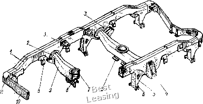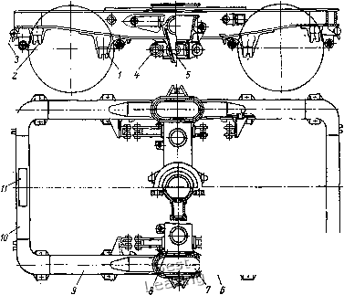 Рис. 41. Рама тележки электровоза ВЛ80к: / - большой кронштейн; 2 - малый кронштейн; 3, 6 - кронштейн тормовной передачи; 4 - кронштейн подвески тягового электродвигателя; 5 - кронштейв гасителя колебаний; 7 - накладка боковой опоры; 8 - шкворневой брус; 9 - боковина; 10 - концевая балка; - накладка противоразгрузочного устройства; 12 - угольники 0 1 2 3 4 5 6 7 8 [ 9 ] 10 11 12 13 14 15 16 17 18 19 20 21 22 23 24 25 26 27 28 29 30 31 32 33 34 35 36 37 38 39 40 41 42 43 44 45 46 47 48 49 50 51 52 53 54 55 56 57 58 |