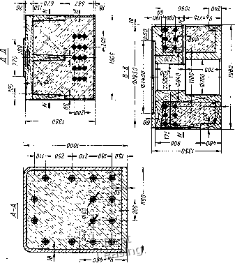 Рис. 52. Расчетные характеристики станины: а - расчетная схема железобетонной Станины; б - момент в стойках; в - эпюра моментов Исходные данные: Р = 900 ООО кГ; I = 251 см; h = 709,9 см; 7* = = 80,1. \Ф см\ 7р = 62,8 • 10« см\ 7°р = 12,523-106 см\ ip = 48 776 см = 38 662 см; Fp = И 561 см; Еб= 0,41.10 кГ/см; h= 590 см. Расчетная схема станины дана на рис. 52, а. Моменты инерции и площади сечений приведены К бетону. 0 1 2 3 4 5 6 7 8 9 10 11 [ 12 ] 13 14 15 16 17 18 19 20 21 22 23 24 25 26 27 28 29 30 31 32 33 |