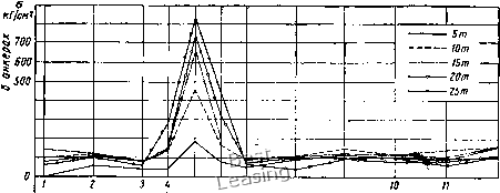 Основным критерием работоспособности стендовых плит является жесткость, от которой зависит точность базовых установочных поверхностей, а следовательно, и точность обработки и сборки изделий. Жесткость плит можно оценивать на основе сопоставления расчетных или экспериментальных данных о деформациях (прогибах, углах поворота сечений) с допустимыми значениями деформаций плит. Последние выбирают исходя из требований прямолинейности рабочей поверхности плит и устанавливают по данным специально поставленных экспериментов или по результатам обработки статистических данных для аналогичных конструкций, проверенных в эксплуатации. К сожалению, в настоящее время отсутствуют нормативные данные о допустимых деформациях плит при эксплуатационной нагрузке, что в значительной мере затрудняет проектирование таких конструкций. Определение расчетным путем деформаций сборочных стендов, состоящих из ряда соединенных между собой плит, при сложных видах нагружения представляет большие трудности. Приближенно стендовые плиты можно рассматривать как тонкие жесткие пластины на сплошном упругом основании. Основанием служит бетонный массив фундамента, если жесткость фундаментов значительно превышает жесткость плит, или грунт, если жесткость фундамента и жесткость плиты одного порядка. При этом предполагается совместная работа фундамента и плиты. Напряжения в плитах, как правило, невелики и обычно расчета на прочность плит не требуется. При изучении местной прочности и жесткости железобетонных стендовых плит существенное значение имеет вопрос прочности и жесткости анкеровки чугунных закладных частей в бетоне. Большие растягивающие напряжения в анкерах, а следовательно, значительные их удлинения могут привести к нарушению сцепления между чугунной плитой и бетоном. Чтобы определить величину и характер распределения растягивающих напряжений в анкерах чугунной плиты, которые возникают в процессе крепления изделий к плите прихватками, а также напряжений от действия усилий резания при определенном сочетании моментов, проводились лабораторные испытания на натурном образце железобетонной стендовой плиты. При креплении изделий прихватками на плиту в месте зажатия действуют три взаимно уравновешенные силы, вызывающие местные деформации закладной плиты. Максимальные отрывающие усилия, принятые при испытаниях, назначаются из условия равенства расчетных нагрузок максимально возможным усилиям в болтах при затяжке изделий в производственных условиях. В результате анализа экспериментальных исследований были сделаны следующие выводы. Наибольшая величина растягивающих напряжений в анкерах вблизи зоны их соединения с чугуном равна 850 кГ/см (рис. 83), что не превышает = 2400 кГ/см 130 для Ст. 5. Основная часть сосредоточенной растягивающей нагрузки, передающейся на анкеры, воспринимается в продольном направлении плиты тремя, а в поперечном двумя соседними ан- ![]() цзоо %200 § too 5 6 7 в 9 Номера и положение точек Рис. 83. Распределение напряжений в анкерах по длине плиты керами, симметрично расположенными по отношению к оси приложения нагрузки, т. е. основную долю нагрузки воспринимают шесть анкеров, принадлежащих одной балке (рис. 83 и 84). КГ/СМ 4 700 g Ц600 5 500 1 ш 5 300 \гоо %">" о