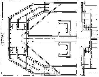 ние применяли специальные винтовые приспособления, соединенные попарно перекладинами из труб диаметром 36 мм. Плавным вращением ручек винтовых приспособлений добивались проектного положения опорных плоскостей опорных узлов. С помощью отвеса, линейки, угломера, нивелира и машиностроительного уровня выверяли йолокенйе опорных платиков плоских каркасов относительно узкой и широкой чугунных направляющих. После окончательной проверки проектных отметок фиксировали плоские каркасы отдельными стержнями и маячными хомутами. Затем снимали и собирали каркасы балок (рис. 99) Каркасы балок собирали в> определенном порядке. Вначале размечали места установки хомутов и других стержней, затем ![]() Рис. 99. Сборка металлического каркаса раскладывали их в технологической последовательности, приваривая их к стальным полосам. Сборку каркаса передней части станины начинали с установки и закрепления боковой рамы, предназначенной для крепления коробки подач суппорта. Установку и выверку рамы производили с помощью отвеса и угломера. Рама после установки и закрепления должна быть строго перпендикулярна к нижней плите. Отклонения ее боковых поверхностей от заданного положения не должны выходить за пределы припусков, оставленных на окончательную механическую обработку после бетонирования. Затем собирали каркас передней части. После сборки каркасов балок и каркаса под переднюю часть устанавливали внутренние щиты опалубки балок и диафрагм, а затем монтировали предохранительные листы диафрагм и облицовочные листы балок с приваренными к ним анкерами. Сборку каркасов диафрагм начинали с установки хомутов, сквозь которые продевали горизонтальные наклонные рабочие стержни. Одновременно со сборкой каркасов диафрагм вели монтаж и закрепление платиков и труб для транспортировочных валиков. Хомуты, охватывающие трубы и связывающие их с полосой, изготавливали из арматуры периодического профиля с загибом в горячем состоянии по трубе. Они должны плотно облегать трубу. 166 ![]() После сборки каркаса и установки платиков тщательно осматривали и проверяли положения стержней каркаса и платиков, устраняли замеченные дефекты и очищали сварные швы от шлака. После продувания каркаса сжатым воздухом с целью очистки от шлака и мусора устанавливали предохранительные сетки, которые привязывали к каркасу проволокой. Для предотвращения заплывания цементным молоком открытых металлических поверхностей платиков, направляющих и внутренних поверхностей монтажных труб их смазывали тонким слоем отработанного машинного масла. На этом работа по подготовке каркаса-к установке опалубки заканчивалась. Для изготовления станины была принята деревянная опалубка из сосновых досок толщиной АО мм и брусьев. Опалубка представляет собой деревянную щитовую сборно-разборную конструкцию, состоящую из наружных и внутренних щитов балок (рис. 00), щитов диафрагм и брусков крепления. Для получения хороших бетонных поверхностей внутренние поверхности щитов облицованы кровельным листом. Опалубку в проектное положение устанавливали в строго определенной последовательности, увязывая с арматурными работами. Так, внутренние щиты опалубки балок и щиты диафрагм уста- навливали после сборки каркаса балок и обязательно до сборк» каркаса диафрагм. Затем собирали наружные щит