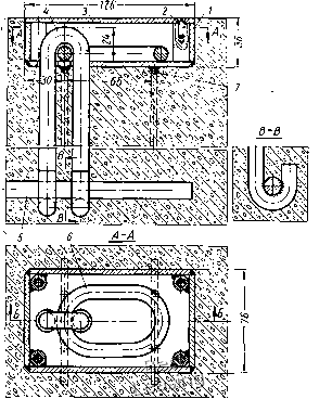 к фундаменту, и однбврёменНо аНкербм для металлических опорных площадок и опорных платиков. Железобетонную раму рольганга армируют плоскими сварными арматурными каркасами из стали класса А-II, которые при монтаже объединяют в один прострдн- ![]() Рис. 35. Скрытая монтажная петля: / - корпус; 2 - винт; 3 - крышка; 4 - анкерная скоба; S-поперечина; 6-подъемное кольцо; 7-анкерные хомуты ственный каркас. Опорные платики запроектированы выступающими на 25 мм над поверхностью бетона, поскольку они служат также базовой площадкой при механической обработке верхних металлических опорных площадок. Для защиты бетонных поверхностей от повреждений при случайных ударах снаружи по периметру арматурного каркаса располагают защитные сетки из арматурной стали класса А-I диаметром 3 мм, с размерами ячейки 40X40 мм. Для транспортирования и кантования рамы предусматривают скрытые монтажные петли (рис. 35), размеры которых принимают в зависимости от веса транспортируемой рамы. Применение желе-64 Зобетона для Изготовления рамы рольганга с индивидуальным приводом позволило снизить расход металла с 850 кг до 230. При транспортировании слитков и коротких толстых полос возможен случай, когда на один ролик передается практически полный вес полосы. При транспортировании тонких и длинных полос предполагают, что вес полосы распределяется между всеми роликами равномерно. Статическую нагрузку на один ролик определяют по табл. 8 в зависимости от веса и размера заготовки. Динамическая нагрузка возможна при падении тяжелой полосы на рольганг с высоты, например, когда полоса при выходе из валков поднимается за счет нижнего давления прокатки и затем падает на рольганг или когда уровень прокатки выше уровня роликов рольганга. Такие случаи бывают и при кантовании тяжелой полосы, когда она сначала ставится на ребро и затем падает на грань, а также при отрезании заднего конца полосы на тяжелых ножницах, не имеющих прижима, когда задний конец полосы под воздействием нижнего ножа поднимается и затем падает на рольганг. Определив усилия, которые передаются роликом на раму, производят расчет железобетонной рамы рольганга. В зависимости от конструкции рольганга схема нагружения может быть различной. Обычно рамы рольгангов рассматривают как балки на двух опорах (с консолями или без них), нагруженные усилиями от роликов, собственным весом рамы и в некоторых случаях весом электродвигателей и редукторов, установленных на раме. Таблица 8 Величины статической нагрузки на один ролик в зависимости от веса и размера заготовки