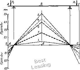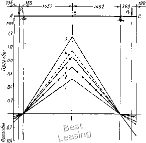 Железобетонные рамы рольгангов рассчитывают на прочность и жесткость в вертикальной плоскости. Достаточная жесткость рам необходима для обеспечения точности взаимного расположения подшипниковых опор и предотвращения их перекосов при эксплуатации. Железобетонные рамы рольгангов рассчитывают на усилия, возникающие при транспортировке. с целью определёйия ЗКсЦерймейталЬНЫм путем величин де* формаций железобетонной рамы рольганга при статическом приложении расчетных нагрузок и сопоставления их с данными расчетов в НИИПТМАШе (г. Краматорск) производились стендовые испытания. Раму нагружали до расчетной величины. Схема нагружения показана на рис. 36. По данным испытаний построен график (см. рис. 36) нарастания деформаций в железобетонной ![]() Рис. 36. График нарастания деформаций в железобетонной раме рольганга с индивидуальным приводом рамной конструкции раме рольганга при увеличении нагрузок (/ - = 196 кГ, Р = = 100 кГ; 2 - Pi = 980 кГ, Р = 500 кГ; 3 - Р 1764 кГ, . - - - - - - 5-Р,- являются = 900 кГ; 4 - Р = 2156 кГ, Р = 1100 кР; - 2790 кГ, Рг = 1440 кГ). Расчетными нагрузками Pi = 2790 кГ и Р = 1440 кГ. При выдержке испытываемой железобетонной рамы под расчетными нагрузками в течение 1 ч 40 мин нарастание деформаций не наблюдалось. При дальнейшем увеличении нагрузки до Pi = 4000 кГ, Р = 2000 кГ видимые трещины не обнаружены. Из данных эксперимента следует, что при расчетных нагрузках железобетонные рамы рольгангов работают в упругой стадии. Результаты эксперимента подтвердили правильность проведенных расчетов железобетонной рамы рольганга с индивидуальным приводом. По данным эксперимента, прогиб рамы рольганга посредине в точке В при расчетных нагрузках соответственно Р = 2790 кГ, Рг = 1440 кГ равен 0,407 мм, а по расчету - 0,35 мм. Одновременно была испытана железобетонная рама рольганга с индивидуальным приводом балочной конструкции (рис. 37) по 66 той же методике, на том же стенде и на те же нагрузки для определения экспериментальным путем величин деформаций при статическом приложении расчетных нагрузок и сопоставления их с данными испытаний рамы рольганга рамной конструкции.