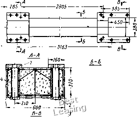 Рис. 37. Железобетонная рама рольганга балочной конструкции: / и 3-верхние металлические опорные площадки; 2-нижние опорные платики; 4 - трубы По данным испытаний построен график (рис. 38) нарастания деформаций в железобетонной раме рольганга. Из этих данных следует, что при расчетных нагрузках железобетонные рамы рольгангов балочной конструкции работают в упругой стадии, а прогиб ее посредине при расчетных нагрузках составляет 1,16 мм, в то время как при этих же расчетных нагрузках в железобетонных рамах рольгангов рамной конструкции величины прогибов посредине не превышают 0,41 мм. Следовательно, железобетонные рамы рольгангов рамной конструкции более жестки, меньше деформируются и при выборе конструкции железобетонных рам рольгангов с индивидуальным приводом им следует отдавать предпочтение. Рамы рольгангов в процессе эксплуатации иногда подвергаются воздействиям ударных нагрузок различного характера. Наиболее 5* 67 опасны изгибные ударные нагрузки, возникающие при падении заготовок на ролики рольгангов. Чтобы проверить работоспособность данного типа рам рольгангов, в НИИПТМАШе (г. Крама- ![]() Рис. 38. График нарастания деформаций в железобетонной раме рольганга с индивидуальным приводом балочной конструкции торск) Провели стендовые испытания железобетонной рамы рольганга на действие ударных изгибных нагрузок. Нагрузка создавалась в результате удара свободно падающего груза весом 400 кГ. По данным экспериментов построен график изменения деформаций (прогибов), вызванных ударными нагрузками (рис. 39). Из эксперимента следует, что с увеличением энергии удара прогибы увеличиваются. При высоте падения груза от 100 до 1000 мм испытуемая железобетонная рама рольганга работает в 1-й, упругой, стадии. При высоте падения груза от 1000 до 2000 мм испытуемая рама начинает работать в стадии IL Об этом свидетельствует появление волосных трещин при падении груза с высоты 1000 мм и увеличение их числа и глубины. В связи с образованием волосных трещин из работы частично выключается бетон растянутой зоны, т. е, ![]() Прогибы Рис. 39. График нарастания деформаций в железобетонной раме рольганага с индивидуальным приводом при во?действии ударных нагрузок уменьшается рабочая высота сечения, о чем свидетельствует уменьшение амплитуды колебаний при высоте падения груза от 1200 до 1600 жж. При дальнейшем увеличении высоты падения груза от 1600 до 2000 мм наблюдается некоторое увеличение амплитуды колебаний за счет увеличения энергии удара. При высоте падения груза 2000 мм и выше волосные трещины в испытуемой раме развиваются и появляются пластические деформации. Энергия колебаний, вызванных ударом, гасится за 2,5-0,3 сек, причем чем больше возрастает энергия удара, тем меньше время гашения энергии колебаний, что также свидетельствует об увеличении пластических деформаций. Испытания показали, что железобетонные рамы рольгангов способны воспринимать большие повторные ударные нагрузки, сохраняя работоспособность. РАМА РОЛЬГАНГА С ГРУППОВЫМ ПРИВОДОМ Конструкция железобетонной рамы рольганга разработана НИИПТМАШем для тонколистового прокатного стана 1700. Секция железобетонной рамы рольганга (рис. 40) состоит из двух продольных железобетонных балок 1 тл. 3, соединенных между собой при помощи траверс 2 в жесткую пространственную конструкцию, которая обеспечивает пра