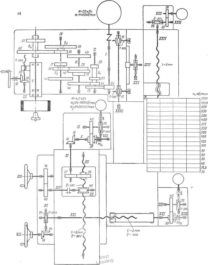 пЧ?0о5/мин ![]() Рис. 65. Кинематическая схема широкоуниверсального фрезерного станка модели 6М83Ш (а) и сетки для построения графиков частот вращения валов и подач (б, е) ![]() гь-1Ц20о61мин ![]() N=4,2 кВт 7124-180005Iмав 2400-061 май Рис. 67. Кинематическая схема бесконсольного вертикально-фрезерного станка модели 656П {а) и сетка для построения графика частот вращения валов (б) 0 1 2 3 4 5 6 7 8 9 10 11 12 13 14 15 16 17 18 19 20 21 22 23 [ 24 ] 25 26 27 28 29 30 31 32 33 34 35 36 37 38 39 40 41 42 43 44 45 |
