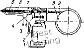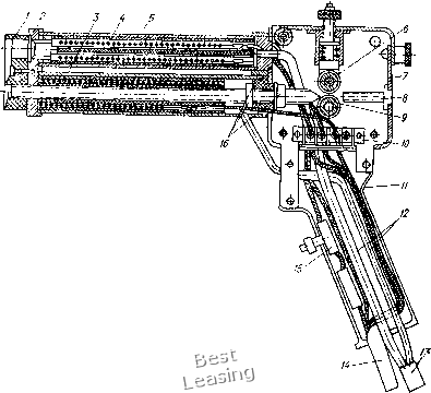 ![]() Рис. 46. Нагревательное устройство полуавтомата ПСП-5 Для сварки термопластов расплавленным прутком разработаны портативные полуавтоматы ПСП-5, ПСП-5М, СА-124 и РЭСУ-500А [3, 10, 35). Полуавтомат ПСП-5 состоит из переносного пульта управления и нагревательного устройства (рис. 46). Цилиндр 5 нагревательного устройства выполнен из латунв либо другого теплопроводного металла. Он ввинчен в охладитель 7, который омывается проточной водой и охлаждает входной участок о целью предотвращения преждевременного размягчения присадочного материала и устранения его прилипания к стенке цилиндра. Присадочный материал в этой зоне играет роль поршня, проталкивающего расплав через зону нагрева. Остальная часть цилиндра нагревается спиралью из нихромовой проволоки 6. Спираль навивается так, чтобы максимальный нагрев был на выходе присадочного материала из трубки. С наружной и внутренней сторон спираль изолирована прокладками из миканита и закрыта кожухом. Цилиндр вместе с охладителем закреплен на ручке 2, в которой вмонтированы электродвигатель привода / и микровыключатель для его включения, срабатывающий при нажатии на пусковой курок. Вращение с вала электродвигателя подается на редуктор 3 и подающие ролики Давление роликов на присадочный пруток 9 регулируется винтом, что позволяет вести сварку прутком диаметром 3- 5 мм, подаваемым с катушки 5. Общая масса полуавтомата ПСП-5 составляет 20 кг, масса нагревательиого устройства - 1,5 кг, производительность - 0,25 кг расплава в час. На базе полуавтомата ПСП-5 создан ряд полуавтоматических специальных установок, например карусельный стенд УСА-1 для сварки чехлов щелочных аккумуляторов из полиэтилена высокого и низкого давления. Полуавтомат ПСП-5М является модернизированной конструкцией полуавтомата ПСП-5 и отличается от последнего тем, что на цилиндре нагревательного устройства дополнительно смонтирована винтообразная трубка, по которой проходит газ-теплоносптель, нагреваясь от той же электроспирали, что и присадочный пруток. Расход газа-теплоносителя- до 0,5 mV4. Полуавтомат СА-124 предназначен для сварки листов толщиной до 8 мм с применением присадочного прутка диаметром 3 мм. Производительность - 0,35 кг расплава в час. Масса пульта управления - 17 кг, нагревательиого устройства - 1,15 кг. Полуавтомат РЭСУ-500А предназиачеи для сварки расплавленным прутком горизонтальных, вертикальных и потолочных сварных швов полиэтиленовой футеровки железобетонных конструкций в процессе их изготовления и монтажа, а также для сварки пленок и листов из полиэтилена и полипропилена. В качестве присадочного материала при сварке изделий из полиэтилена высокого давления применяется пруток круглого сечения диаметром 4,0 ± 0,2 мм, при сварке изделий из полиэтилена низкого давления и полипропилена - диаметром 3,0-3,5 мм. Изготовление прутков осуществляется экспериментальной базой Донецкого Промстройииипроекта. В комплект полуавтомата РЭСУ-500 А входят нагревательное устройство прямоточного типа (рис. 47), пульт управления, электрический кабель, гибкий резиновый шланг для подвода газа-теплоносителя я футляр для переноски нагревательного устройства. Оптимальный температурный режим сварки зависит от свойств свариваемого материала и температуры окружающей среды. Он определяется путем контрольных сварок иа различных режимах загот