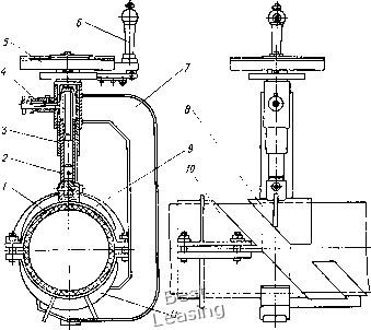 ![]() Рис. 16. Струбцина для сварки труо в косой стык: / труба; 2 - пиноль; 3 - шпиндель; 4 - стопор; о - диск; 6 - ручка силового устройства; 7 - корпус; S - крышка; Jподушка прижимная; /О - направляющая; -основание II. Технические характеристики монтажных устройств для сварки