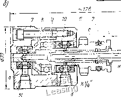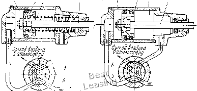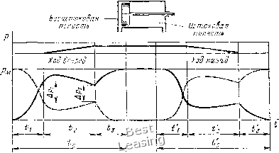 детали; 4) простота управления зажимными устройствами приспособлений; 5) бесперебойность работы пневмопривода при изменениях температуры воздуха в цехе. Недостатки пневматического привода: 1) нестабильная плавность перемещения рабочих элементов из-за сжимаемости воздуха, особенно при переменной нагрузке; 2) небольшое давление сжатого воздуха в полостях пневмоцилиндра и пневмокамеры (0,39-< 0,49 МПа (4-5 кгс/см); 3) относительно большие размеры пневмоприводов для получения значительных сил на штоке пневмопривода. 0] 1 ![]() 1оЗа.ча сжатого иозаухаот сети. Поваш сжатого ВвзЗухаотсети, Рис. V.I. Пневмоприводы одностороннего (а) и двустороннего действия (б) Пневматические поршневые приводы. В поршневых пневмоприводах одностороннего действия (рис. V.1, а) сжатый воздух подается только в одну полость / пневмоцилиндра и перемещает поршень 2 со штоком 4 вправо при зажиме детали. При разжиме детали поршень 2 со штоком 4 отводится влево пружиной 5, установленной на штоке, а воздух через золотник 5 крана 6 уходит в ат.мосферу. В поршневых пневмоприводах двустороннего действия (рис. V.1, б) сжатый воздух поочередно подается в полости I w 3 пневмоцилиндра и перемещает поршень 2 со штоком 4 при зажиме и разжиме деталей. Золотник 6 распределительного крана 5 при повороте рукоятки производит последовательную подачу сжатого воздуха в полость / или 3 пневмоцилиндра и выпуск воздуха из полостей / или 3 в атмосферу. При расчете пневмоприводов определяют осевую силу на штоке поршня, зависящую от диаметра пневмоцилиндра и давления сжатого воздуха в его полостях. Можно по заданной силе на штоке поршня и давлению сжатого воздуха определить диаметр пневмоцилиндра. В приспособлениях с пневмоприводом следует опреде- лять время его срабатывания. Расчет осевой силы Q на штоке поршневого привода производится по следующим формулам; для пневмоцйлйндров одностороннего действия (рис. V.1, а) Q = (n/4)Z)Vi1-Qi; [Г для пневмоцйлйндров двустороннего действия (рис. V.1, б) при давлении сжатого воздуха на поршень в бесштоковой полости Q=(n/4)DVi1 и штоковой полости Q=(n/4)(D2-fi?2)r). Здесь D - диаметр пневмоцилиндра (поршня), см; d - диаметр штока поршня, см; р = 0,40 - давление сжатого воздуха, МПа (р = 4 кгс/см); т) = 0,85-0,9 КПД, учитывающий потери в пневмоцилиндре; Qi - сила сопротивления возвратной пружины в конце рабочего хода поршня, И (кгс). Возвратная пружина на штоке при ее предельном сжатии (в конце рабочего хода поршня) должна оказывать сопротивление от 57о при больших до 20% при малых диаметрах пневмоцилиндра от силы Q на штоке пневмоцилиндра в момент зажима детали в приспособлении. Практически применяют следующие размеры диаметров D рабочей полости цилиндров: 75, 100, 125, 200, 250, 300, 350 мм. Определим диаметр пневмоцилиндра двустороннего действия по заданной силе Q и давлению сжатого воздуха р. В формуле Q=(n/4)D2pT) для упрощения расчета опускаем КПДт), но для надежности зажима найденную силу Q на штоке увеличиваем в 1,5 раза. Тогда формула для Q примет вид 1,5д = (я/4)Д2/?, откуда Принимая /0 = 0,4 МПа (4 кгс/см), найдем диаметр D;0,7yQ. Найденный размер диаметра пневмоцилиндра округляют по нормали и по принятому диаметру определяют действительную осевую силу Q на штоке. На рис. V.2 дана диаграмма работы пневмоцилиндра двустороннего действия, связывающая элементы времени t (с) и давление р МПа (кгс/см). Штриховая кривая на диаграмме показывает изменен