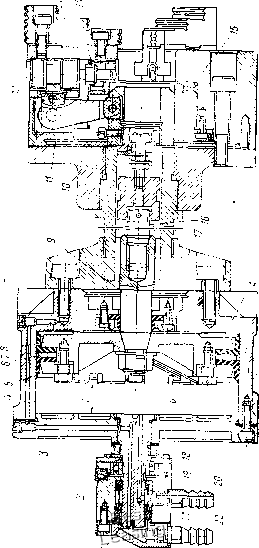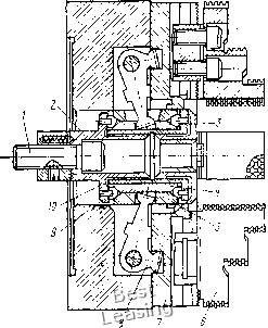 силы резания Рг, Ро -осевая сила, возникающая при обработке детали. Момент Мтр и силу Ртр можно определить еще и другим способом: М,р=/ркйЧ 2; Р,р= fpKdl, где / = 0,1-j-0,12 -коэффициент трения между поверхностями детг-ли и оправки; /? -удельное давление на поверхностях сопряжения детали и оправки, МПа (кгс/см). Допуск на изготовление оправки диаметром 80-100 мм принимают бз = 0,01 мм, а допуск на износ 64 = 0,01-0,012 мм. Центровые цельные конические оправки изготовляют из мало, углеродистых обычных и легированных сталей с цементацией рабочих поверхностей и закалкой до твердости HRC 58-62. § VI.6. Люнеты Люнеты применяют как дополнительные опоры для у.меньшения прогиба длинных деталей при l>\2d, обрабатываемых на токарных и шлифовальных станках [/ - длина детали; d - наибольший диаметр детали]. По конструкции люнеты разделяют на универсальные и специальные, по способу установок на станке - на неподвижные и подвижные. Универсальные люнеты с раздвижными кулачками применяют при обработке деталей с разными диаметрамп. Специальные люнеты применяют для обработки партии деталей одного размера или для поддержания приспособления, установленного на шпинделе станка с большим вылетом. Универсальные люнеты устанавливают или на станке (неподвижные), или на каретке станка, с которой они перемещаются (подвижные). На рис. VI.9 показан неподвижный универсальный люнет В. К. Семинского. В корпусе 4 люнета вместо кулачков установлены два шарикоподшипника 5. В отверстие крышки 6 вставлен валик 9 с пружиной, на конце которого подвижно закреплена серьга с двумя шарикоподшипниками 5. При закреплении обрабатывае* ![]() Рис. VI.9. Неподвижный универсальный люнет мого вала 7 опускают крышку 6 люнета и гайкой 8 регулируют положение валика 9. Затем рукояткой 1 поворачивают эксцентрик 2, в спиральный паз которого входит штифт 3, установленный в крышке 6, и крышка перемещается к центру люнета. При этом пружина 10 прижмет серьгу 11 с верхними подшипниками 5 к валу 7 и он зажимается между верхними и нижними подшипниками люнета. § VI.7. Универсальные кулачковые патроны Кулачковые патроны применяют для установки и зажима различных деталей, обрабатываемых на токарных и шлифовальных •станках. В зависимости от количества кулачков патроны разделяются на двух-, трех- и четырехкулачковые. Они бывают с ручным и механизированным приводом. Патроны бывают самоцентрирующими и с независимым перемещением кулачков, универсальными и специальными. Имеется четыре класса точности патронов: Н - нормальной; П - повышенной; В - высокой; А - особо высокой точности. Технические требования на токарные патроны общего назначения даны в ГОСТ 1654-71. Двухкулачковые патроны. Такие патроны применяют для установки и закрепления деталей по некруглой поверхности или фасонной поверхности. Их изготовляют с ручным приводом, со спирально-реечным и винтовым механизмами (ГОСТ 14903-69), с клиновым центрирующим механизмом (ГОСТ 16866-71) и клинорычажного типа (ГОСТ 16682-71). Работают они от механизированного яривода, закрепленного на заднем конце шпинделя токарного или токарно-револьверного станка. Двухкулачковые патроны крепятся на переднем конце шпинделя станка с помощью промежуточного фланца или к фланцевому концу шпинделя станка. Универсальный двухкулачковый патрон. Двухкулачковый самоцентрирующий клинорычажный механизированный патрон (ГОСТ 16682-71), по