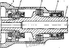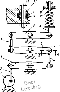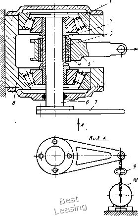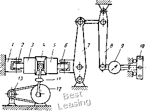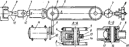 болты 21, шариковые упорные подшипники 19 центрируют узел трения относительно качалки. При сборке параллелограммного механизма вначале верхняя и нижняя качалки соединяются пружинной тягой, а шарнирную опору нижней качалки перемещают в положение, при котором будет обеспечена требуемая величина усилия в пружине. Затем устанавливают тендерную тягу, длину которой предварительно соответствующим образом подбирают. Вращением стержня 13 тендерное устройство укорачивают до размера, при котором достигается взаимная параллельность противоположных звеньев параллелограммного механизма. Усилие, возникающее в пружине 6, полностью определяется ее упругостью и расстоянием между качалками. Поскольку в процессе работы установки эти параметры не изменяются, остается постоянной и усилие пружины, независимо от частоты и амплитуды качаний. Выбранная кинематика установки позволяет проводить одновременно испытание чатырех пар трения в практически одинаковых условиях. Стенд для испытания на износостойкость радиальных подшипников (рис. 53) использовали в условиях статического нагружения при качательном движении с частотой до 6 Гц и угловой амплитудой до а = 0,087 (5°). Применяли две модификации стенда: один "стенд, предназначенный для испытания радиальных подшипников с диаметром не более 40 мм, рассчитан на приложение радиальной нагрузки до 10 ООО кгс; второй, предназначенный для испытания подшипников диаметром до 100 мм, позволяет довести величину радиальной нагрузки до 100 ООО кгс. Узел трения образован втулкой 2, двумя испытываемыми подшипниками 3, и втулкой 4, запрессованной в натурную деталь 5, к которой прикладывается усилие в направлении, показанном на рисунке стрелкой. Втулка 2 соединена с валом 6 при помощи шпонки. Качательное движение сообщается валу рычагом 7, связанным с эксцентриком 10 тензометрической тягой 9. Вал 6 центрируется в станине 8 посредством двух радиально-упорных подшипников /, имеющих размеры, значительно превышающие размеры испытываемых подшипников. Роликовый стенд (рис. 54) * предназначен для проведения испытания на трение радиальных подшипников в условиях статического нагружения при колебательном движении с частотой до 6 Гц и угловой амплитудой до а = 0,087. Основными деталями стенда являются цилиндрические ролики 1 и 2, которые перека-тываются один по другому. Вал верхнего ролика жестко закреплен в нагрузочном рычаге 3, а вал нижнего ролика жестко закреплен в станине 9. Усилие к рычагу 3 прикладывается через дина- * Альтфельд В. С, Демин Н. Г., Савинский Ю. Э. Устройство для измерения трения подшипников скольжения. Авт. свид. № 363886, Бюллетень изобретений, 1973, № 4, с. 93. мометр 7 от винтового силовозбудителя 8. Качательное движение сообщается нижнему и фрикционно связанному с ним верхнему роликам кинематическим звеном, включающим в себя двигательный рычаг 4, тензометрическую тягу 5 и эксцентрик 6. Испытываемые подшипники 10, установленные на валах , размещаются ![]() Рис. 53. Стенд для испытания радиальных подшипников в центральных отверстиях роликов 1 и 2. Угловое смещение верхнего ролика измеряется устройством 12, основным элементом которого служит электропотенциометрический датчик. Термопары устанавливают в испытываемых подшипниках на расстоянии 1,5 мм от рабочей поверхности. Стенд позволяет проводить испытания радиальных подшипник