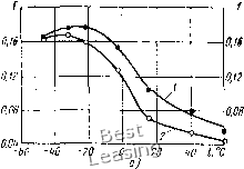 ![]() 0,16 0.12 Рис. 68. Характеристики сухого трения, полученные на роликовом стенде: 200 т б) h00P,Kr/cM а - зависимости коэффициента треиия от температуры при амплитудном эначеини скорости скольжения (/ - 1 см/с; 2 - 2 мм/с); б - зависимость коэффициента трения от скорости скольжения при температуре 15* С; в-зависимости коэффициента трения от удельной нагрузки при V„ = l см/с J - (-22* С); 2 - (О С); 3 - (-Ь15 С) показателем чего служат приведенные на рис. 71 зависимости температуры вблизи поверхности скольжения (рис. 71, а) и, соответственно, коэффициента трения (рис. 71,6) бронзофторопластового слоя от времени ислытания. Для определения влияния вида наполнителя фторопласта на температурные зависимости коэффициента трения металлофторопластового материала на роликовом стенде испытаны подшипники размерами DxdXl = 56,6x50,6X44,6 мм с толщиной приработочного слоя 0,1 мм. Испытания проведены без смазки при удельной нагрузке на подшипник, равной 400 кгс/см и амплитудном значении скорости скольжения 1 см/с, после 5 ч работы подшипников на указанном режиме. Результаты измерений сведены в табл. 18. Таблица 18 ВЛИЯНИЕ ВИДА НАПОЛНИТЕЛЯ НА КОЭФФИЦИЕНТ ТРЕНИЯ ПОДШИПНИКА ПРИ РАЗЛИЧНЫХ ТЕМПЕРАТУРАХ Наполнитель Коэффициент трення при температуре, °С