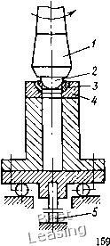 ![]() Рис. 77. Неравномерность срабатывания рабочего слоя подшипника по его длине: а - общий вид (Х0,8); б - вид поверхности наиболее нагруженного участка (Х40); в - микрошлиф поперечного сечения наиболее нагруженного участка (ХЮО); г - внд поверхности центрального участка На рис. 77 показан общий вид рабочей поверхности радиального подшипника размерами D X d X / = 78 X 70 X 100 мм после его работы в течение 500 ч под воздействием радиальной нагрузки Р = 26000 кгс, при колебательном движении с угловой амплитудой а = 0,0058 и частотой v = 4,8 Гц {pV= 2 кгс/смХ Хм/с). Подшипник испытывали в сопряжении типа «ухо - вилка», причем вал сопряжения имел в сечении размеры D X d = 70 X X 56 мм. На краях подшипника отмечается значительный износ бронзофторопластового слоя (рис. 77, б и 77, s). В то же время видно, что центральный участок подшипника, занимающий половину всей его длины, практически не работал - на нем заметны лишь незначительные следы скольжения по приработочному слою (рис. 77. г). > . С целью уменьшения неравномерности нагружения данного подшипника его внутренняя, сопрягаемая с валом, поверхность была выполнена с коническими участками. Длина каждого конического участка, расположенного на краю втулки, составляла одну треть от длины подшипника, угол конусности был равен 0°20. При этом, центральная часть внутренней поверхности подшипника осталась без изменений. Испытания такого подшипника, проведенные на указанном выше режиме, но при увеличенной до одного градуса амплитуде качаний (pF = 6 кгс/см-м/с) на базе 100 ч показали, что введение конических участков в конструкцию обеспечивает практически равномерное по длине нагружение радиального подшипника. Рациональную геометрию подшипника следует подбирать применительно к конкретным условиям его нагружения в различных узлах трения. Применение многоповерхностного подшипника. Значительное увеличение допустимых при заданной долговечности значений произведения удельной нагрузки на скорость скольжения может быть достигнуто применением металлофторопластовых подшипников с несколькими, одновременно работающими рабочими поверхностями. Одним из удачных является использование такого «многоповерхностного» подшипника в конструкции подпятника Ч Упорный многоповерхностный подшипник выполнен в виде пакета плавающих чередующихся между собой металлофторопластовых и промежуточных стальных шайб. Металлофторопластовые шайбы имеют рабочую поверхность с обеих сторон. Рабочим слоем при этом может являться приработочный слой металлофторопластового подшипника, толщину которого целесообразно увеличить до 0,1-0,2 мм. Одновременное включение в процесс скольжения многих рабочих поверхностей обусловливается тем, что при увеличении скорости скольжения значительно возрастают силы трения, особенно когда подшипник работает по слою фторопласта с наполнителем. Парытрения, которым сообщена повышенная, по сравнению с другими парами, скорость, тормозятся соответственно увеличенным моментом трения и передают движение парам, имеющим меньшую скорость и меньший момент сопротивления движению. Таким образом, качательное движение, передаваемое шарнирным соединением, распределяется между несколькими рабочими поверхностями так, что амплитудное значение скорости скольжения и соответственно величина pV уменьшаются пропорционально числу рабочих по