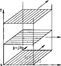 Шаг 2 ---= а (бл:;. / + 6yUi, /j. „n+l „п+1/2 (4.103) В результате проведенного «расщепления» задача сводится к решению систем линейных алгебраических уравнений с трехдиагональной матрицей. На шаге 1 такая система решается для каж- ![]() n+l/z Рис. 4.16. Схема расчета неявным методом переменных направлений. Стрелками указаны направления, по которым схема неявна. дой строки (ряда точек с фиксированным /), а на шаге 2 -для каждого столбца (ряда точек с фиксированным i). Схематически рассматриваемая процедура решения уравнения теплопроводности показана на рис. 4.16. Неявный метод переменных направлений обладает вторым порядком точности с погрешностью аппроксимации 0((Л)2, (Ax)2, (At/)). Проанализировав выражение для коэффициента перехода [1 -Гх{\- cos х)] [1 - гу (1 - cos Ру)] 1\+Гх(\- cos Р;,)] [1 + (1 - cos р)] находим, что этот метод безусловно устойчив. Здесь необходимо отметить, что получающаяся при наиболее очевидном обобще- Шаг 1 нии этого метода на трехмерный случай разностная схема (трех-шаговая схема, использующая значения величин на шагах по времени л, л + 1/3, л + 2/3, л+1) оказывается лишь условно устойчивой и имеет погрешность аппроксимации О (At, (Ал:) 2, (Ау)\ (А2)2). Для того чтобы обойти это, Дуглас и Ганн [Douglas, Gunn, 1964] предложили общий метод построения неявных схем переменных направлений, имеющих второй порядок точности и безусловно устойчивых. Применяя этот метод, можно обобщить схему Кранка - Николсона на случай трехмерного уравнения теплопроводности. В результате получим следующую трехшаговую схему: Шаг 1 Шаг 2 = + ) + 62 + иГ) + г,б2 (4.104) Шаг 3 Здесь верхние индексы * и ** обозначают промежуточные значения, а индексы /, /, k опущены во всех членах уравнений. 4.2.10. Методы дробных шагов, или методы расщепления Неявные методы переменных направлений тесно связаны, а иногда и совпадают с методами ращепления, или, как их еще иногда называют, методами дробных шагов, которые были созданы советскими математиками примерно в то же время, когда в США были разработаны неявные методы переменных направлений. Основная идея этих методов состоит в расщеплении конечно-разностного оператора на ряд одномерных операторов. Например, к простой неявной схеме решения двумерного уравнения теплопроводности можно применить метод расщепления следующим образом: Шаг 1 ,,п+1/2 ,,п --== аЬхШ, / . Шаг 2 (4.105) ,,п+1 „л+1/2 --д-= аЬуЩ, / . Шаг 2 На шаге 1 разностные уравнения решаются маршевым методом от левой границы к правой. При таком марше величина и:1 всегда известна, поэтому неизвестная определяется «явно». Аналогично на шаге 2 уравнения решаются маршевым методом от правой границы к левой, и схема снова является «явной», так как значение а+2 уже известно. При этом предполагается, что значения функции и на границе области известны. Хотя рассматриваемая схема является трехслойной по времени, для хранения в памяти ЭВМ величины и достаточно одного массива, благодаря тому что при расчете значение и в каждом узле сетки используется лишь один раз. Явная схема переменных направлений безусловно устойчива и имеет погрешность аппроксимации 0{(Af)2, (Ал:), (А/Аа:)2). Из-за наличия в погрешности аппроксимации члена [At/Axy эта разностная схема формально имеет первый порядок точности. Другой вариант явного метода переменных направлений предложен Баракатом и Кларком [Barakat, Clark, 1966]. Маршевым методом одновременно решаются уравнения в обоих направлениях, а полученные р