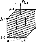 неустойчивость решения, характеризуемую большими осцилляциями решения, даже если анализ устойчивости на возникновение таких осцилляции не указывает. Возможно построить абсолютно неустойчивые разностные схемы, удовлетворяющие ограничениям, накладываемым областями влияния. Опишем кратко несколько наиболее часто используемых схем расчета трехмерного пограничного слоя. При этом индексами Al, /, k будем обозначать номера узлов по координатным осям Хи Хъ (или X, т), г). Решение уравнений мы будем искать при переходе от плоскости, соответствующей д-му шагу по маршевой координате, в плоскость, соответствующую (д+ 1)-му шагу по маршевой координате. Решение на (п-f 1)-м слое будем находить, начиная со значений k = 1 (обычно этому значению k соответствует плоскость симметрии) и определяя решение при всех /. В результате при заданных п vl k найдем решение на линии, нормальной к обтекаемой поверхности. После этого индекс k увеличивается на единицу и решение получается в другом «столбце» (ряде точек, расположенных на нормали к поверхности). Таким образом, на (д+ 1)-м слое осуществляется расчет маршевым методом в направлении вторичного течения. В приведенных ниже разностных соотношениях неизвестными являются значения величин на слоях п+ I, k. Схема Кранка - Николсона. Несколько исследователей использовали обобщенную на трехмерный случай схему Кранка - Николсона. Из анализа областей влияния и зависимости следует, что ее можно применять для расчета течений лишь тогда, когда скорость вторичного течения не меняет знак. Поместим центр разностного шаблона в точку п+1/2, /, k-l/2. На рис. 7.25(a) разностный шаблон изображен так, как он виден сверху, со стороны потока (т. е. показаны лишь точки в плоскости г). Заштрихованная область приблизительно показывает максимальный размер области зависимости, допускаемый таким шаблоном. Светлым кружком обозначена точка, значения параметров в которой неизвестны, а крестиком - положение центра шаблона. При отрицательной скорости вторичного течения условия, накладываемые принципом влияния, не могут быть выполнены, так как при переходе к столбцу n+Uk, используемый шаблон не допускает передачи возмущений в направлении, противоположном направлению оси z. С другой стороны, до тех пор пока G О, принцип влияния не накладывает никаких ограничений на шаг Дх, так как при F > О, G О любая линия тока лежит внутри шаблона. Было предложено несколько вариантов схемы Кранка - Николсона. Чаще всего член уравнения вида д/дц{адф/дц) аппрок- симируется по тем же формулам, что и в двумерном случае, но при этом дополнительно проводится осреднение между столбцами k и k-1. Члены уравнений, содержащие производные дф/дх и дф/дг\, тоже аппроксимируются по формулам, используемым в двумерной схеме Кранка - Николсона, но с дополнительным осреднением между столбцами k и k-l. Производные в поперечном направлении (например, в члене уравнения ![]() ![]() (а) (Ь) Рис. 7.25. Схема Кранка - Николсона. (а) Проекция шаблона на плоскость x, z\ (b) контрольный объем для уравнения неразрывности. (7.111), помеченном цифрой (1)) аппроксимируются следующим образом: /1+1/2 /.ft-1/2 .rt+1 I tt n+\ Если обтекается криволинейная поверхность, то параметры кривизны К\ и Кг отличны от нуля и необходимо найти аппрокси-мационные соотношения для членов уравнения (7.111), помеченных цифрами (2) и (3). Аналогичные члены появляются в ура