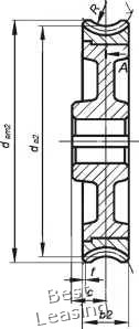 м, =d,-(7im-1.571m)- + D-tga где а = 20"-для червяков Z1, ZN1, ZN2, ZK1; sina = sin 20 "-cosy- для червяка ZA, D - диаметр измерительного ролика (d > 1.67т). Выбор показателей точности червяка показатели точности предлагается выбирать и указывать в учебных целях. показатели или комплексы точности выбираются в зависимости от степеней точности (см табл. 5.15). каждый установленный комплекс показателей является равноправным с другими, хотя при сравнительных оценках влияния точности передач на их эксплуатационные качества основными и единственно пригодными во всех случаях являются функциональные показатели fjor, /zor. fzkor, мгновенное и суммарное пятна контакта. при выборе показателей или комплексов точности следует учитывать конкретные условия производства, в частности, наличие тех или иных измерительных средств. Показатели плавности работы червяка принимаем комплекс (8-я степень точности) по табл. п.5.5: • предельное отклонение осевого шага fp = ±24 мкм; • допуск на накопленную погрешность к шагов fpfc = ±40 мкм; • допуск на погрешность профиля витка =36 мкм. Показатели контакта зубьев червячного колеса с витками червяка в червячной передаче имеем червячную передачу с нерегулируемым расположением осей. принимаем следующий комплекс (8-я степень точности)- • предельные отклонения межосевого расстояния в червячной паре 4 = ±90 мкм (см. табл. п.5.7); • предельные отклонения межосевого угла червячной передачи = ±16мкм (см. табл. п.5.8); • предельные смещения средней плоскости червячного колеса в передаче = ±71 мкм (см. табл. п.5.7). Нормы бокового зазора предельные отклонения контактной хорды устанавливаются для червячных передач с нерегулируемым расположением осей и рассчитываются следующим образом. наименьшее предписанное уменьшение контактной хорды витка червяка, осуществляемое с целью обеспечения в передаче гарантированного бокового зазора (верхнее отклонение), состоит из двух слагаемых, первое из которых зависит от вида сопряжения и межосевого расстояния а„, а второе - от степени точности по нормам плавности, модуля и межосевого расстояния: Ess = Essi + Ess2 =-170-120 = -290 мкм. Позиция 6. делительная толщина по хорде витка. относится ко второй части таблицы - данные для контроля. в соответствии с гост 2.406-76 указываются данные для контроля взаимного положения профилей витка червяка. к первому рекомендуемому варианту относятся параметры: • делительная толщина по хорде витка sg, =6.264 мм (см. табл. 5.14); • высота до хорды ht =4.001 мм (см. табл. 5.14). ко второму рекомендуемому варианту относится параметр: • размер червяка по роликам Таким образом, нижнее отклонение: Ej,. = Ejj - Fj = -290 -140 = -430 мкм , Наружный диаметр червяка dgi используется в качестве базы для контроля толщины витка. В этом случае должны быть ограничены предельные отклонения наружного диаметра червяка и его радиальное биение Frfai. Рекомендуется назначать поле допуска на наружный диаметр с верхним отклонением, равным нулю. Допуски на наружный диаметр Т и его радиальное биение Е выбираются: Tdai = 0.687 =0,687-140 = 96 мкм; Fda, = 0,343-7=0,343-140 = 48 мкм . Значения допуска и радиального биения принимаются ближайшими меньшими по соответствующим таблицам: Tdai = 74 мкм, что соответствует 9-му квалитету, Fda1 = 40 мкм, при этом Ff <0,6-F, =0,6-71 = 43 мкм. Учитывая, что в качестве измерительной базы используется наружный диаметр, выполненный с некоторыми погрешностями, следует пересчитать табличные 