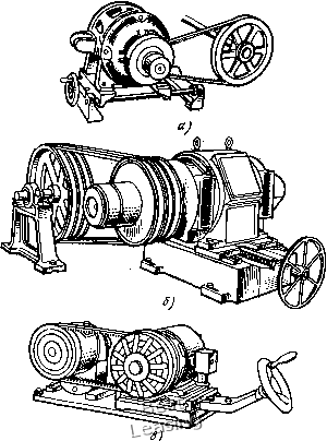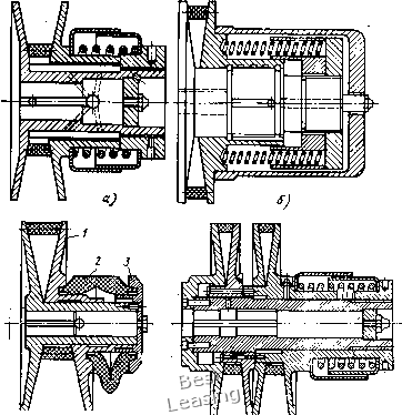 о Serges + erofts YBayton • Hainswortli muoveJOY a frailer LReeves VSimplabelt < Bando cschaerer bp,MM Рис. 61. Относительные диаметры шкивов вариаторов с широким ремнем ПО прямой, данной на графике рис. 60. С увеличением ширины ремня угол канавки следует увеличивать, а при малых ширинах снижать. Последнее даст возможность расширить диапазон регулирования или при данном диапазоне назначать большие диаметры шкивов. Так, уменьшение для ремня 1-В25 угла канавки с 26 до 22° позволяет увеличить наименьший диаметр с 45 до 55 мм. При этом потери на радиальнре скольжение остаются на том же уровне, на поперечное сжатие - снижаются на 25%, на изгиб сни- 5 в. А. Иронии и др. 129 жаются на 50%, а долговечность ремня должна повыситься примерно в 2,5 раза. Относительные диаметры шкивов на практике выбирают в достаточно широких пределах § = 5,5...11 (рис. 61); предусмотренные в стандарте значения § для каждой из групп вариаторов (см. табл. 14) соответствуют принятым значениям. Однако необходимо иметь в виду, что для заданного диапазона наименьший диаметр шкива всегда следует брать возможно большим. Это улучшает все показатели работы вариатора: тяговую способность, КПД вариатора и долговечность ремней. 5.3. КОНСТРУКЦИИ ВАРИАТОРОВ С ШИРОКИМ РЕМНЕМ Передачи с одним регулируемым шкивом выполняются по схеме на рис. 3, а. Регулируемый шкив в них подпружинен; регулирование достигается изменением межосевого расстояния. На рис. 62 изображены три конструкции подобных передач. Регулируемый шкив, как правило, насаживается на вал электродвигателя, ведомый шкив постоянного диаметра - на вал рабочей машины. Перемещением двигателя изменяется натяжение ремня, заставляющее перемещаться диски подпружиненного шкива и изменяющее его рабочий диаметр. Передача очень проста, не требует много места, так как вписывается в габариты нормальных клиноременных передач. Такие передачи выпускаются за рубежом многими фирмами на мощность при одном ремне до 18 кВт при «1 = 1440 об/мин с диапазоном регулирования 2...3 и иногда до 4. Имеются передачи и на большую мощность. Показанная на рис. 62, б передача рассчитана на 45 кВт при щ - 720 об/мин и «2 = 285...400 об/мин. Сборные салазки под двигатель (рис. 62, а) применяются при передачах малой мощности, при большей - литые (рис. 62, б). По первому типу ЭНИМСом спроектированы два типоразмера вариатора: ВРС-2 и ВРС-1 на мощность 2,8 и 7 кВт при Д = 2. Выбором диаметра ведомого нерегулируемого шкива можно в широких пределах изменять предельные значения передаточных отношений. Наименьшее передаточное отношение обычно берется в пределах = 0,5...2,5, наибольшее - tax = 1>5.-.7. Возможность осуществления больших передаточных отношений весьма ценна для приводов со значительным понижением угловой скорости. Применение подобной передачи позволяет упростить кинематическую цепь. Вследствие применения ведомого шкива большего диаметра передачи этого типа по сравнению с вариаторами с двумя регулируемыми шкивами обладают более высокой тяговой способностью, повышенными КПД и долговечностью ремня. Величина перемещения двигателя должна допускать изменение межосевого расстояния (см. раздел 2.2) от атщ = Отш - 0,015L ДО oJnax = йгаах 4- 0,03L [здссь а„,„ И о - межосевые расстоя- ния в крайних положениях ремня, определенные по формуле (13) при номинальной длине ремня]. При салазках, подобных изображенным на рис. 62, и наклонном расположении передачи к горизонту (рис. 63)