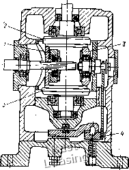 Глава 7 КОНСТРУКЦИИ и РАСЧЕТ ФРИКЦИОННЫХ ВАРИАТОРОВ Существует много разнообразных конструкций фрикционных вариаторов, и предлагаются все новые и новые их конструктивные решения. Однако лишь некоторые из них выдерживают проверку практикой. Ниже рассматриваются наиболее распространенные конструкции вариаторов. 7.1. ЛОБОВЫЕ И КОНУСНЫЕ ВАРИАТОРЫ Лобовые вариаторы изготовляют как с непосредственным контактом ведущего колеса с ведомым, так и с промежуточным роликом (см. рис. 112, а, з). Конструктивно эти вариаторы наиболее просты и в свое время применялись больше, чем вариаторы других типов. Рабочие поверхности стальных фрикционных колес выполняются шлифованными с шероховатостью 0,63 ... 0,32. Основной недостаток лобовых вариаторов - значительная величина геометрического скольжения. Последняя согласно формуле (177) может быть определена из зависимости 1+р 1+р 2Рф ± 1 ± 1 (210) где Dx - переменный диаметр диска. При ведущем цилиндрическом колесе (« = 0; «а = 90°) берется знак плюс, а при ведущем диске («1 = 90°; «2 = 0) - знак минус. Если принять Damin/b = 20 и р = 1,5 при ведущем цилиндрическом колесе, то 1 = 8,3%. Таким образом, даже при больших минимальных диаметрах дисков скольжение значительно. Вследствие этого лобовые вариаторы целесообразно использовать лишь при малых мощностях. Соединение дисков с валами рекомендуется осуществлять шариковыми или винтовыми нажимными устройствами, при которых сила нажатия пропорциональна нагрузке. Во избежание чрезмерного скольжения центральную часть диска использовать не следует. Одинарная передача, показанная на рис. 112, а, применяется при малых диапазонах регулирования. Если передача работает при постоянной мощности, то ведущее колесо следует выполнять цилиндрическим; при постоянном моменте сопротивления ведущим; необходимо делать диск. Сила нажатия и Fi/F, при этих условиях постоянны. Приведенная кривизна пары в лобовом вариаторе постоянна;, для цилиндрического колеса р = 0,5D, для диска р = оо. Расчет на контактные напряжения следует вести на минимальном диаметре диска, при котором требуется наибольшая сила нажатия и скольжение достигает наибольшей величины. Радиус колеса (см) при работе с N = const при работе с моментом на ведомом валу = const г, = 0,444 у"- 2ф£ (212) В эти формулы при ведущем диске подставляется /щах, при ведомом диске i. Допустимая величина ф = rib (г - минимальный расчетный радиус диска) может быть определена из выражения (210) по запасу сцепления Р и выбранной допустимой величине геометрического скольжения 1г. При ведущем цилиндрическом колесе с учетом смещения полюса качения кинематические соотношения будут . R2x + m . тт. . Rj + m, «11 г-\-х-\-т здесь r-i - радиус цилиндрического колеса; х - перемещение ведущего колеса из положения при г<. Координата т полюса качения определяется по формуле (169). Из анализа последнего выражения видно, что угловая скорость с перемещением ведущего колеса нарастает неравномерно. При малых радиусах диска небольшое его перемещение будет значительно изменять частоту вращения ведомого вала. При ведущем диске / 2 • Ru-m «2 = ni(Ru-m)n Га Га Здесь зависимость угловой скорости от перемещения х линейна.. Одинарные лобовые передачи находят применение в приводах интеграторов, фрикционных прессов, прядильных и некоторых других машин. Сдвоенные лобовые передачи (см. рис. 112, з) выполняются с большими диапазонами регули
