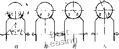 такие вариаторы на небольшую мощность (рис. 139). Конструктивными особенностями этих вариаторов являются несимметричное регулирование, применение самоустанавливающихся роликов, наличие центральной опоры чашек, применение одного механизма автоматического нажатия, располагаемого со стороны входного вала, а также последовательное расположение пружины предварительного нажатия. Вариаторы выпускаются как в виде самостоятельных передач, так и с прифланцованными электродвигателями и редукторными приставкам 1 с простыми и планерными зубчатыми передачами. Изготовляются вариаторы на мощность 0,15 ... 5,5 кВт с диапазоном регулирования от 4,5 до 10; максимальное передаточное отношение фрикционной передачи 3,1 ... 4,67. Частота вращения 250 т woo 1500 г ООО гбоо то п,о1/тн Рис. 140. Зависимость передаваемой мощности, крутящего момента и КПД от частоты вращения выходного вала для наибольшего типоразмера вариатора фирмы After входного вала га = 1400 об/мин; у малых типоразмеров - до 2800 об/мин. Передаточное отношение приставок от 2,58 до 4,58. На рис. 140 показан на примере наибольшего типоразмера характер изменения мощности и крутящего момента на выходном валу, а также КПД вариатора. Максимальное значение Т1„ах 0,92. ![]() Рис. 141. Схема шарового вариатора 7.3. ШАРОВЫЕ ВАРИАТОРЫ В шаровых вариаторах (см. рис. 112, ф, х) ведущее и ведомые колеса имеют конические рабочие поверхности. Промежуточными телами являются шары. Регулирование производится изменением угла наклона оси вращения шаров, что изменяет радиусы и Гг (рис. 141, а) до точек контакта шара с конусами. Если ось вращения шара параллельна линии, соединяющей точки контакта а и Ь, или при одинаковых углах конусов обоих колес ! па- / раллельна оси колес (рис. 141, б), то r-i = и передаточное отношение вариатора / = 1. При наклоне оси вращения шара из этого положения против часовой стрелки на угол у (рис. 141, а) имеет место работа на ускорение, при обратном наклоне оси вращения -работа на замедление. Если ось вращения шара проходит через точку b касания его с ведомым конусом (рис. 141, в), то rg = О, и ведомая система останавливается. Если ось вращения проходит между точками контакта а и (рис. 141, г), то ведомая система вращается в обратную сторону. Следовательно, шаровой вариатор может обладать большим диапазоном регулирования с остановкой и реверсом ведомой системы. Однако при приближении оси вращения шара к точке контакта геометрическое скольжение значительно возрастает, характеристика вариатора получается нежесткой (угловая скорость ведомого вала значительно изменяется при изменении нагрузки), а КПД резко падает. Поэтому практически диапазон регулирования принимают для вариаторов, выполненных по схеме, показанной на рис. 112, до 10 ... 12, а для вариаторов, выполненных по схеме на рис. 112, л: - до 9. В вариаторах на рис. 112, ф при вращении ведомого и ведущего валов в одну и ту же сторону вершина конуса, касательного к поверхности шара в точке контакта, и вершина конуса соответствующего колеса расположены по одну сторону от рабочего пояска. В вариаторах на рис. 112, х вершины конусов лежат по разным сторонам рабочего Аояска. Вследствие этого геометрическое скольжение в вариаторах первого типа меньше. Однако пятно контакта в них расположено менее благоприятно, чем в передачах по схеме, показанной на рис. 112, х, а именно большей осью по направлению движен