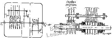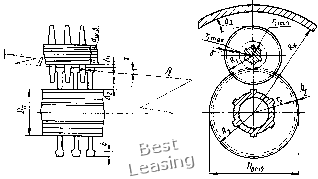 Примечание. Данные, указанные в числителе, соответствуют наибольшей, а в знаменателе -наименьшей частоте вращения выходного вала привода. Фирма Sumitomo применяет в вариаторах на мощность более 11 кВт косозубые зубчатые колеса. Таким образом, на первом этапе проектирования вариатора необходимо по заданной передаваемой мощности принять частоту вращения его входного вала га. При этом следует учесть приведенные выше ограничения. Далее определяется передаточное отношение ускоряющей зубчатой передачи. При выборе его приходится согласовывать две противоположные тенденции. С одной стороны, желательно понизить частоту вращения выходного вала вариатора, чтобы по возможности не применять редуцирующих передач за вариатором. С другой стороны, с целью уменьшения окружной силы в контакте фрикционных пар желательно повысить частоту вращения шлицевых валиков. Кроме того, с увеличением скорости конических дисков становятся более благоприятными условия образования масляной разделительной прослойки в зонах контакта дисков. Для установления передаточного отношения зубчатой передачи можно воспользоваться графиком J, „ = ~ = - на ![]() 5011,,кВт Рис. 155. Зависимость передаточного отношения зубчатых передач от мощности рис. 155, построенным на основе анализа выполненных конструкций W z-i - частота вращения и число зубьев шестерни входного вала; Пд и Zg - то же, шестерни периферийного шлицевого вала). Затем следует установить число периферийных пакетов конических дисков. Для вариаторов на передаваемую мощность до 55 кВт можно рекомендовать трехпакетную систему периферийных дисков. При трех пакетах улучшается теплоотвод, упрощается сборка вариаторов, а габаритные размеры их оказываются вполне приемлемыми. Для более крупных типоразмеров могут применяться четырех- и шестипакет-ные системы. При этом следует иметь в виду, что при трех пакетах все диски нагружаются вполне определенно и примерно равномерно, чего не будет при четырех- и шестипакет-ных системах. Как показывают испытания шестипакетных вариаторов, в передаче нагрузки одновременно участвует примерно 70% всех дисков. Остальные диски вследствие их разнотолщинности либо не передают нагрузку, либо нагружены не в полной мере. Несмотря на это, крупные типоразмеры вариаторов следует выполнять с шестью пакетами. Так, вариаторы фирмы Schaerer на мощность 250 кВт имеют шесть пакетов по 13 дисков в каждом. Количество дисков в пакетах целесообразно выбирать возможно большим, так как это позволяет существенно разгрузить каждую фрикционную пару. С целью увеличения диапазона регулирования диаметр периферийных шлицевых валиков желательно выполнять минимальным. При большом количестве дисков в пакете валики могут оказаться недостаточно прочными вследствие значительного расстояния между опорами. Кроме того, с увеличением количества дисков в пакете повышается неравномерность их прижатия по длине пакета вследствие потерь на трение в шлицевом соединении, а также возрастает перемещение дисков центрального пакета при вдвигании в него периферийных дисков, а это создает дополнительные трудности при разработке кулачкового нажимного устройства. Оптимальное число конических дисков гд в пакете и ориентировочный диаметр шлицевых валиков под них можно установить по графику на рис. 156. Приведенным на графике зна