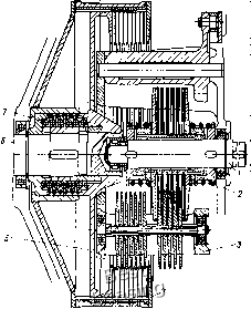 ростными электродвигателями, благодаря чему диапазон регулирования доведен до 8 при максимальном передаточном отношении вариатора 5. В табл. 23 приведены данные четырех типоразмеров (I-IV) этих приводов [4]. вторая cmijneHb ![]() Рис. 153. Схемы многодисковых вариаторов с расширенным диапазоном регулирования: а - с двухступенчатым зубчатым перебором; б - с двухступенчатой фрикционной передачей Вариаторы с внешним касанием дисков. Многодисковый вариатор представляет собой комплекс взаимосвязанных механизмов: фрикционные передачи; многопоточная зубчатая передача; автоматический нажимной механизм; механизм, обеспечивающий синхронизацию перемещения периферийных пакетов дисков. Выбор ряда основных параметров этих механизмов целесообразно ВесТи с учетом у>кё сложившегося опыта разработки таких вариаторов с последующим расчетом некоторых их параметров. Обобщение зарубежного и отечественного опыта проектирования многодисковых вариаторов с внешним контактом, выпол няемых по наиболее распространенной - второй схеме, позволило построить ряд графиков, по которым можно установить основные параметры вариатора в зависимости от заданной передаваемой мощности или момента. Фирма Schaerer допускает работу всех выпускаемых ею по второй схеме типоразмеров вариаторов при и, = 1470 об/мин. Фирма Sumitomo ограничивает частоту вращения входных валов следующими значениями: /Vi, кВт.................. <15 15 ... 35 >35 «1, об/мнн................. 1500 1000 750 = Практика эксплуатации отечественных многодисковых вариаторов также подтверждает целесообразность уменьшения частоты вращения входных валов с увеличением типоразмера вариатора, что и отражено в разработанном ВНИИРедуктором ряде таких вариаторов. Снижение частоты вращения входных валов вариаторов по мере укрупнения их типоразмеров объясняется стремлением ограничить динамические нагрузки в прямозубых многопоточных ускоряющих зубчатых передачах при возрастании окружной скорости шестерен и тем самым снизить их шумовую характеристику. В крупных типоразмерах при га, = = 1500 об/мин окружная скорость шестерен достигает 20 ... 25 м/с. При этом становится затруднительным выполнить требования техники безопасности к передаточным механизмам в отношении шумовых характеристик даже при 5 ... 6 степени точности изготовления прямозубых шестерен. Это подтверждается данными замера уровня звукового давления при стендовых испытаниях многодискового вариатора английской фирмы Armstrong, проведенных в ЭНИМСе. ![]() Рис. 154. Схема двухступенчатого вариатора с внешними и внутренним касанием дисков: / - входной вал; 2 - пружинно-кулачковый нажимной механизм первой ступени; 3 - неподвижное водило; 4 - вращающаяся обойма с пакетом отбуртованных дисков; 5 - нажимной фланец; 6 - выходной вал: 7 - пружинно-кулачковый нажимной механизм второй ступени Параметры приводов МВДР-ДУ