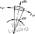 с i JO 12,5 15 17,5 бр,кгфм Рис. 21. Зависимость модуля упругости и при изгибе с растяжением от напряжения Ор (номера кривых соответствуют номерам ремней по табл. 8) Модуль упругости Еи более точно характеризует изгибную жесткость ремня, но определение его весьма трудоемко. Как видно из рис. 21, с увеличением напряжения растяжения изгибная жесткость существенно растет, и при сТр = 12 ... 20 кгс/см £„ достигает наибольшего значения, превышающего в 1,7 ... 2,5 раза величины при чистом изгибе. Это объясняется тем, что с увеличением растягивающей силы слой с нулевым напряжением смещается вниз и все большая часть корда работает на растяжение, повышая изгибную жесткость. При смещении нулевого слоя за пределы корда величина Е стабилизируется. Приведенные выше сведения по модулю упругости при изгибе получены для новых ремней. Опыты показали, что в первые часы работы величины £„ снижаются примерно в 1,5 ... 1,6 раза. Это объясняется структурными изменениями материала элементов, вытяжкой обертки слоя растяжения и частичным ослаблением связи обертки с резиной. Как и при растяжении, модуль упругости при изгибе при работе передачи, т. е. в динамике существенно выше, чем в статике. Так, для ремня УБ он был в 1,25 раза, а для ремня 4 сечением 28 X 13,5 (табл. 8), имеющего жесткую тканевую подушку в слое растяжения, в 1,65 раза, достигая 200 кгс/см против 115 кгс/см в статике. Жесткость ремней при поперечном сжатии в значительной степени зав11сит от конструкции ремня и соотношения размеров сечения v или от фактора формы Ф, представляющего отношение площади опорных поверхностей детали к ее свободной поверхности. Для клинового ремня 2Ы h 1 (ui+i„)/ Чем относительно шире ремень, меньше Ф, тем меньше поперечная его жесткость при сжатии. Для узких клиновых ремней Ф = = 1,2 и модуль упругости при сжатии Е = 180 кгс/см как при тканевом, так и при шнуровом корде; для клиновых ремней нормального сечения Ф = 0,8 и £(, = 125 ... 130 кгс/см [58]. У вариаторных ремней Ф = 0,33 ... 0,5. Поэтому, если они имеют такую же конструкцию, как и нормальные клиновые ремни, то поперечная жесткость становится еще меньше, что приводит к значительным потерям мощности и снижает жесткость кинематической характеристики. Поэтому вариаторные ремни требуют применения резин большей твердости и введения в подушки тканевых наполнителей. Для вариаторного сплошного ремня 28 X 13,5 мм с тканью в слое растяжения, аналогичного ремню 4 (табл. 8), при Ф = 0,55 модуль упругости при сжатии Е = = 270 ... 300 кгс/см, а для такого же ремня с нарезанными зубьями Е = 205 ... 235 кгс/см [6]. С увеличением относительной ширины ремней модуль упругости при сжатии необходимо повышать. Модули упругости £(, в динамике и в статике оказались блцзкими. Вытяжка ремней при работе зависит от материала корда, конструкции ремня и существенно от качества изготовления. Как показали многочисленные испытания, остаточное удлинение в первые 0,5 ... 2 ч работы нарастает быстро и достигает примерно 1%. Затем вытяжка растет медленно, и перед началом разрушения - снова быстро. При серийных испытаниях качественных вариаторных ремней удлинение их за весь период работы составляет 2,5 ... 3,5%. г л а в а 4 ТЕОРИЯ И ОСНОВЫ РАСЧЕТА КЛИНОРЕМЕННЫХ ВАРИАТОРОВ 4.1. СИЛЫ НАТЯЖЕНИЯ РЕМНЯ Чтобы обеспечить необходимое прижатие ремней к шкивам, им в положении покоя задают предварительное натяжение Fg. При холостом ходе на элемент ремн
