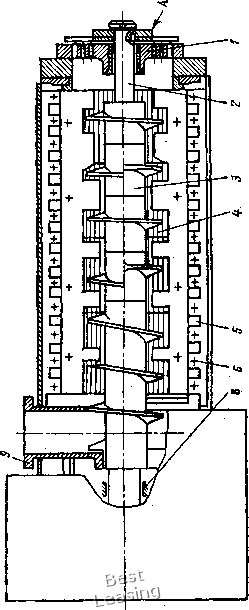 ![]() Установлено, что формирование структуры стеллита с высоким содержанием твердой эвтектики (до 90%), не закрепленной в мягкой пластичной основе, приводит к зна- W V/ iV.-* \ чительному износу и по-выщению коэффициента трения. Наоборот, при меньшем содержании эвтектики (не более 30%) в стеллите, например полученном центробежной заливкой, износостойкость наиболее высокая из исследованных образцов. Приведенные данные показывают, что интенсивность изнашивания стеллитовых сплавов снижается по мере уменьшения эвтектики в структуре сплава. Кроме того, на величину износа оказывает влияние размер пластин эвтектики и зерен твердого раствора. Полученная литьем в землю крупнопластинчатая эвтектика сплава больше подвергается изнашиванию, так как при трении крупные пластины эвтектики легче дробятся и выкрашиваются из мягкой пластичной основы твердого раствора. Таким образом, результаты проведенного исследования показали, что наилучшей микроструктурой для антифрикционных износостойких стеллитовых сплавов являются микроструктура с равномерным распределением мелкопластинчатой или мелкозернистой эвтектики с размером зерен до 0,1-0,2 мм и содержанием не выше 30-50% в мягкой основе твердого раствора. ![]() Рис. 82. Микрофотография структуры сплава Х32Н8АМ2 (XI000), полученного наплавкой металлокерамической лентой (а) и проволочным электродом (б) Ниже приведена конструкция машины, в частности червячного пресса для отжима влаги из крошки каучука, в которой удалось благодаря установке дополнительног.о подшипника из стеллита ВЗК, смазываемого перерабатываемым полимером, повысить износостойкость рабочих органов в 2,5-4 раза и довести средний ресурс пресса до капитального ремонта до 16 000 ч. В червячных прессах для удаления влаги из каучука свободный конец вала у выгрузного устройства опирался на корпус за счет отжатия перерабатываемым продуктом. Такая конструкция пресса имела существенные недостатки, заключающиеся в том, что в процессе работы фильтрующие пластины фильтра-корпуса и контактирующие с ними витки червячных втулок быстро изнашивались, так как вал неравномерно отжимался от корпуса продуктом, и в местах контакта возникали значительные нагрузки. С увеличением износа контактирующих поверхностей увеличивался зазор между валом и корпусом и падала производительность пресса. Снижение и практическое устранение износа фильтрующих пластин корпуса и червячных втулок вала было достигнуто тем, что свободный конец вала установили на встроенный в фильеру подшипник. Конструкция червячного вала, имеющего две опоры (выносную и встроенную), позволяет выдерживать постоянный заданный зазор между фильтрующими пластинами корпуса и витками червячных втулок вала, предотвратить их касание и, таким образом, почти полностью устранить износ. Червячный пресс (рис. 83) * -состоит из разъемного фильтр-корпуса, образованного наборными прямоугольными фильтрующими пластинами, которые опираются на бугели, стягиваемые по вертикальному разъему болтами, вала.с отдельными червячными втулками, выгрузного приспособлений с установкой в нем опоры - подшипника. Вал имеет еще один выюсной подшипниковый узел, расположенный вблизи загрузочной воронки. Между фильтрующими пластинами на бугелях установлены прокладки, образующие щели для удаления влаги. При вращении вала п