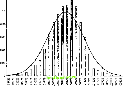 этого нам потребуется распределение относительных частот нашей случайной переменной. В качестве примера возьмем следующее распределение относительных частот доходов по активу. В этом случае высота столбца, где доходность составила данное значение, соответствует проценту от всех наблюдений. Также сумма всех процентов для каждого типа наблюдения должна составлять 100 или 1 в зависимости от представления частностей в процентах или долях единицы (рис. 8.12). Это распределение относительных частот относится к дневным доходам по индексу FTSE 100 с 1984 по 1992 гг. Используя это распределение, мы можем построить кумулятивное распределение относительных частот, изображенное на рис. 8.13. Заметим, что в случае кумулятивного распределения относительных частот вертикальная ось размечена в интервале до единицы, представляя тем самым эмпирическую вероятность, относящуюся к соответствующему значению, расположенному на горизонтальной оси. На горизонтальной оси же в свою очередь отмечен уровень дохода. 0.12 ![]() f ? i ? f f i f i f ? ? i f i ? i f f ? i f ?* ? ?* ? Рис. 8.12 Рис. 8.13 ![]() Этап 2: пмптаипя входных переменных Второй этап заключается в моделировании поведения входных случайных переменных. Для этого необходимо сгенерировать достаточно большое количество равномерно распределенных случайных чисел в интервале от 0 до 1. Затем каждое случайное число откладывается по вертикальной оси кумулятивной плотности, а соответствующее значение случайной переменной находится по горизонтальной оси. Эти значения являются входными для данной модели. Так как кумулятивное распределение относительных частот отражает и величину основной переменной (доход в нашем случае), и эмпирическое распределение вероятностей, значения на горизонтальной оси представляют собой случайные наблюдения основной переменной с эмпирическим распределением вероятностей, которое сходно с распределением подлинных данных. Для иллюстрации этого представим, что сгенерировано случайное число 0,472, располагаемое на вертикальной оси. Двигаясь от него горизонтально по направлению к функции ку- мулятивной плотности, а от точки пересечения с ней - перпендикулярно к оси абсцисс, получим доход, выбранный случайным образом. Если наши данные относятся к дневным доходам по активу, результатом является случайно сгенерированный однодневный доход, определенный исходя из распределения вероятностей, которое сходно с первоначальным эмпирическим распределением. Конечно, благодаря современным компьютерным программам подобные процедуры, выполняемые вручную , заменяются компьютеризированными процессами, но в сущности они аналогичны описанным. Интересно заметить, что числа из генератора случайных чисел, находящиеся в интервале от 0,4 до 0,6, дают результат в диапазоне от -0,25 до 0,25, тогда как случайные числа от 0,7 до 0,9 дают результат от 0,52 до 1,28. Таким образом, крутизна огивы в середине - причина более плотного расположения результатов, тогда как пологость граничных ветвей кривой - причина более разбросанных результатов (в точности то, что и описывает функция вероятности). Некоторые читатели могут спросить, почему мы прибегаем к такому процессу, когда, используя допущение нормальности, можно получить такой же результат. Ответить можно так. Использование нормального распределения обоснованно только в том случае, если 