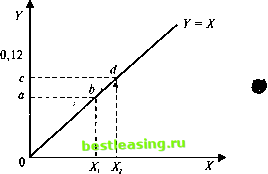 ![]() Рис. 3.5 Затем рассмотрим прямоугольник QcdX2. Площадь опять будет X2, при X- Xi, площадь треугольника будет X1/!. Теперь рассмотрим площадь многоугольника X\bdXi. Она равна разности площадей двух треугольников: ЫХ2-ЪЬХ\. Мы можем рассчитать площадь многоугольника, вычислив площадь каждого из треугольников и вычитая меньшую из большей. Однако существует более легкий способ, который также применим к случаям, когда график функции не является прямой. Этот способ использует концепцию первообразной, рассмотренную выше. Как уже выше сказано, график прямой линии описан функцией Y = X и независимо от значения X, площадь двух треугольников выражена функцией Х2/2. При этом Х2/2 является первообразной от X. Так как X - Xх, мы можем показать это следующим образом: Х1+] X2 первообразная от X =-= -. 1 + 1 2 Таким образом, мы можем найти площадь под кривой между Х\ и Х2 путем нахождения первообразной от X, выразив первообразную в значениях Х\ и Х2 и затем вычитая из большего значения меньшее. Указание на взятие интеграла с использованием первообразной функции J[X) обычно обозначается так: J/(x)dJf = [F(X)fj , (3.64) где j и к - нижнее и верхнее значения по X интегрируемой функции. Сначала для X = 2 мы получим Затем для Х= 4: Отсюда площадь под кривой будет 8-2 = 6. Мы можем проверить это, обратившись к рис. 3.5. Площадь греугольника OdXi при X = 4 будет 42/2 = 8. Площадь треугольника ОЬХ при JST = 2 будет 22/2 = 2.Вычитая из площади тре-дольника 0dX2 площадь треугольника 0ЬХ\, получим 8-2 = 6. Гот же самый результат получен при помощи первообразной. Теперь рассмотрим другую линейную функцию, Y = 4Х, график которой изображен на рис. 3.6. ![]() Рис. 3.6 Теперь предположим, что j = 2 и к = 4. Мы знаем, что первооб-азная от X - это X2/!. Отсюда для нахождения площади под кри-ой Y = Xмежду Х= 2 и К = 4 мы определим следующий опреде-енный интефал, подставляя значения Хв первообразную: Нам надо найти площадь многоугольника JLMK. Для этого надо найти площади треугольников ОЫ и ОМК и вычесть первую из последней. Этот же результат достигается взятием определенного интеграла 4лг<иГ=(ЛГ)]} , где F - первообразная АХ. Сначала возьмем первообразную от АХ, т.е. первообразная от 4Х = --- = 2Х . Чтобы определить площадь под кривой между J = 2 и К = 5, значения 2 и 5 подставляются в первообразную вместо X и вычисляется разница: j4*cUf = [2*2] , что составляет 2(5)2 - 2(2)2 = 2 25 - 2 4 = 50 - 8 = 42. Таким образом, площадь под кривой между X = 2 и X = 5 равна 42 квадратным единицам. Это и есть применение основной теоремы математического анализа, которая гласит, что для определения площади под кривой Y=j(X) следует взять первообразную от функции / между точками j и к. Приведенные выше примеры относятся к ситуации, когда Y - линейная функция от X и верхняя граница площади - прямая линия. Тем не менее аналогичный способ может быть использован для нахождения площади под кривой, где У является нелинейной функцией от X. Чтобы показать это, мы вновь прибегнем к использованию треугольников - см рис. 3.7. Здесь мы опять хотим вычислить площадь под кривой между а и Ъ. Можно начать с построения множества прямоугольников с шириной АХ и высотой, равной расстоянию от оси ОХ до кривой в верхней границе АХ. Мы видим, что сумма площадей построенных прямоугольников больше площади под кривой из-за небольших участков, близких по форме к треугольникам, которые выступают над кривой. Заметьте также, что это указывает на ин- 1 2 3 4 5 6 7 8 9 10 11 12 13 14 15 16 17