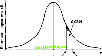 Во-вторых, используя г-таблицы, найти величину площади под кривой между z = 0 и z = нижней границе сегмента. В-третьих, найти площадь под кривой между г - О и z = верхней границе интервала. Разность этих двух площадей и будет равна вероятности того, что случайная переменная будет находиться в заданном интервале. , * Рассмотрим это на следующем примере. Нам нужно узнать вероятность того, что некий актив, доходность которого нормально распределена, принесет доход от 4,9% до 5,0%. Средняя величина дохода по этому активу равна 4%, а среднее квадратическое отклонение составляет 1%. Не забудьте, что для непрерывных переменных мы рассматриваем вероятность того, что переменная примет значение в данном интервале, а. не в данной точке. Значения z Для 4,9% и 5,0% соответственно будут: Из таблицы стандартизованного нормального распределения находим, что площадь между z = 0 и z - 1 равна 0,3413, а площадь между z = 0 и z = 0,9 равна 0,3159. Таким образом, площадь стандартизованного нормального распределения между z = 5% и z = 4,9% равняется 0,3413 - 0,3159 = 0,0254. Это можно интерпретировать так: вероятность того, что доходность актива будет находиться между 4,9% и 5,0%, составляет 2,54%. Этот пример изображен на рис. 4.6. ![]() г = 0,3159 г =0,3413 Рис. 4.6 Этот метод можно использовать для определения вероятности того, что случайная величина, например цена актива, примет значение выше или ниже определенной величины. Предположим, например, мы знаем, что ежедневная доходность некой ценной бумаги нормально распределена с математическим ожиданием, равным 0,5%, и средним квадратическим отклонением 0,1%, и мы хотим узнать вероятность того, что ежедневная доходность будет больше 0,525%. Сначала мы найдем значение нормированной величины Z- Теперь перейдем к таблице и определим площадь под кривой между z = 0 и z - 0,25, которая равна 0,0987. Принимая во внимание, что кривая нормального распределения симметрична и вероятность падения z ниже нуля равна 0,5, определяем вероятность того, что z < 0,25 : 0,5 + 0,0987 = 0,5987. Соответственно вероятность того, что z > 0,25 (или доходность выше 0,525%) составит 0,4013, или 40,13% (1 - 0,5987 = 0,4013). Обычно площадь под кривой определяется интегрированием. К сожалению, для функции нормального распределения не существует первообразной. До изобретения компьютеров это представляло бы собой затруднение, если бы не тот факт, что при стандартизации переменной площадь под кривой остается неизменной, что позволяет использовать табличные данные для стандартизованного распределения. При помощи компьютера можно применить еще несколько удобных способов. Существуют два основных метода нахождения площади под кривой при помощи компьютера. Первый использует метод численного интегрирования, такого, как правило трапеции и правило Симпсона. Другой метод подразумевает использование многочисленной функции, которая приближается к функции, определяемой площадью под кривой. Оба метода рассмотрены в гл. 8, которая посвящена численным методам. Логнормальное распределение Как мы уже отметили выше, в соответствии с центральной предельной теоремой процесс сложения изменений приводит к нормальному распределению. Что же произойдет в результате процесса умножения? Возьмем, например, относительное изменение цены ценной бумаги за период времени At. Пусть S(t) - цена этой ценной бумага в момент времени t и S( t + At) - цена в момент времени t + At, тогда относ