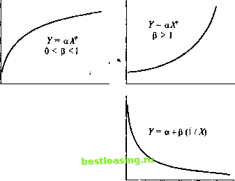 и данные, относящиеся к остальным месяцам. Значит, понадобятся две фиктивные переменные. НЕЛИНЕЙНАЯ РЕГРЕССИЯ До сих пор обсуждение было сфокусировано на линейной регрессии. Однако может случиться так, что взаимосвязь между зависимой переменной и одной или более независимыми переменными будет нелинейной. Существуют два пути решения этой проблемы: 1) преобразовать данные и применить линейную регрессию; 2) применить методы нелинейной регрессии. Нелинейная регрессия не обсуждается в этой книге, так что далее остановимся на преобразовании данных. ПРЕОБРАЗОВАНИЯ ДАННЫХ Графики на рис. 6.7 показывают разнообразные взаимосвязи между К и X, не являющиеся линейными. Однако при соответствующем преобразовании Y, а и X взаимосвязь между Y и X может быть трансформирована в линейную для а и Ь. Таким образом, далее можно использовать МНК Рассмотрим три нелинейные формы, отображенные на рис. 6.7. На верхних графиках функциональной формой является Y = аХ3, где 0 < В < 1 или В > 1. Преобразование в этих случаях заключается во взятии натурального логарифма от Y, а и X. Получающееся уравнение регрессии будет выглядеть так: In У= In а + р In X. (6.65) Преобразование для нижнего правого графика очень простое, если учесть, что 1/Х может участвовать в расчете как независимая переменная. При всех этих преобразованиях необходимо конвертировать результат в нелинейную форму для его правильного истолкования. ![]() Рис. 6.7 ПРИМЕНЕНИЕ РЕГРЕССИОННОГО АНАЛИЗА В ХЕДЖИРОВАНИИ Цель хеджирования состоит в устранении риска для портфеля активов Хеджирование длинной позиции (на покупку) по активу, имеющему риск, достигается занятием короткой позиции (на продажу) в некоторой пропорции от стоимости портфеля по другому, но высококоррелированному рискованному активу. Для иллюстрации этого рассмотрим портфель, имеющий длинную позицию по активу А, которую желательно захеджировать путем занятия короткой позиции по фьючерсному контракту на актив А. До установки хеджа необходимо ответить на два вопроса: 1. По какому инструменту занять короткую позицию? 2. Какую пропорцию от стоимости длинной позиции должна представлять короткая позиция, чтобы минимизировать дисперсию всего портфеля? На первый вопрос легко ответить, рассмотрев коэффициент корреляции изменений цены длинной позиции и потенциаль- ных кандидатур для короткой позиции. Следует выбрать кандидатуру с наивысшей корреляцией с длинной позицией. В данном примере мы допускаем, что это фьючерсный контракт. Что касается второго вопроса, пропорция короткой позиции называется коэффициентом хеджирования. Для нахождения этих коэффициентов часто используется МНК регрессия. Чтобы понять это, рассмотрим снова длинную позицию по облигации с доходом по ней RB. Определено, что высококоррелированным инструментом является фьючерс на облигации. Доход по фьючерсу выражается в виде Rf. Доходы по захеджированному портфелю, т.е. состоящему из длинной позиции по одной единице облигации и короткой по соответствующей величине А фьючерсного контракта, определяются так: RP = (RB- hRF), (6.66) где А - коэффициент хеджирования. Дисперсия доходов по портфелю составляет o2Rp = o2RB - 2h co\(RB, RF) + AVfy. (6.67) Для нахождения коэффициента хеджирования А, который минимизирует дисперсию захеджированного портфеля, следует продифференцировать выражение (6.67) по А и приравнять произ