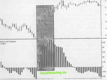 1 I 1 1 I 1 I I I 1 1 I 1 1 I I I I I I 1 1 I 1 1 I 1 I 1 I I 1 1 1 I I 1430 1445 1500 1515 1530 1545 930 945 1000 1015 1030 1045 II00 11 15 11 30 11 45 12 00 12 15 12 30 RealTick® ©1986-2000. Все права защищены. Используется с разрешения Townsend Analytics, Ltd. поднимаются выше 80 или покупать акции, когда стохастики опускаются ниже отметки 20. Однако подобная тактика не работает во время мощных прорывов цены вверх или вниз. Всегда сначала посмотрите на графическую модель, прежде чем попытаетесь интерпретировать технический индикатор. И помните классический совет Мартина Цвейга (Martin Zweig): тренд твой друг. Для прогнозирования будущего движения цены применяйте и анализ ценовых моделей, и технические индикаторы. Однако индикаторы должны служить поддержкой модели, но не наоборот. Графические модели контролируют соотношение доходность/ риск так же успешно, как и определяют ценовые цели, и идентифицируют оптимальные точки выхода из позиции. Пользуйтесь индикаторами для выявления скрытых дивергенций и надвигающихся разворотов. К примеру, не покупайте акции при скоплении участников рынка на пробитии ценового уровня, когда стохастики резко разворачиваются из состояния перекупленное . Или же остерегайтесь совершать короткие продажи в медвежьем рынке, когда RSI разворачивается вверх из состояния перепроданное . Торговые инструменты должны быть обращены и к показателям, и к эмоциональному состоянию толпы, для того чтобы определить местонахождение многообещающего установочного набора для открытия позиции. В то время как используемое программное обеспечение выстраивает целый комплекс сигналов на покупку/продажу, большинство индикаторов утрачивает эмоциональное напряжение, которое в конечном счете и приводит в движение механизм изменения цены. Чтобы решить эту важную задачу, необходимо вернуться к визуальным исследованиям периодических моделей цены и объема. Эффективный анализ ценовых моделей вскрывает настроение толпы, выявляя сигналы среди случайных шумов на графиках акций. Классические модели содержат фракталы, которые предугадывают, какая волатильность и какое ценовое движение ожидается со временем. Опытные интерпретаторы ценовых моделей часто могут игнорировать математическими и фундаментальными показателями, если развитие ценового движения представлено четко очерченной картиной. Однако многие свинг-трейдеры все еще испытывают необходимость пользоваться математическими индикаторами для подтверждения важных наблюдений и в качестве фильтров. Научитесь распознавать уникальный характер появления каждого технического индикатора в отдельности. Многие индикаторы рисуют различные очертания моделей, другие же колеблются между двумя экстремальными уровнями. К примеру, индикатор балансового объема (OBV) может рисовать Голову и Плечи с тем же известным эффектом прогнозирования. Но учтите, что большинство эффективных индикаторов выдает не только сигналы, но и случайные шумы. Научитесь распознавать, когда необходимо прислушиваться к посланиям , получаемым от индикаторов, а когда ими следует пренебречь. Каждый качественный анализ должен подтверждаться текущими рыночными условиями посредством опережающих (силовых) и запаздывающих (импульсных) индикаторов. Популярные осцилляторы, такие как RSI или стохастики, идентифицируют состояния перекупленности/перепроданности рынка. Такие индикаторы, как средние