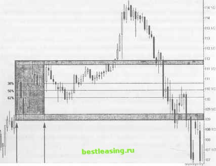 в Нью-Йорке западные рынки пытаются обнаружить стабильность рынка. На биржевых площадках специалисты с помощью своих книг заказов пытаются оценить спрос индивидуальных инвесторов. Перед открытием рынка маркет-мейкеры Nasdaq, связавшись с электронными коммуникационными системами (ECN), выставляют цены, которые будут тестировать свои уровни перед тем, как агрессивные участники рынка ринутся за прибылями внутри спрэда. Фьючерсные контракты на индекс S&P оказывают влияние на пре-маркетовую торговлю посредством арбитража по сходной цене (fair value arbitrage). Не следует ждать от данного рынка указания на лидера, чаще всего его неистовый характер, после вовлечения в трейдинг большого числа участников, вскоре быстро затухает. Хаотические колебания рынка стали неуклонно усиливаться после введения таких новшеств, как мини-контракты и электронный метод осуществления заказов. Фьючерсы Nasdaq 100 представляют собой новый индикатор для определения спроса при открытии регулярной сессии. Тем не менее, трейдеры, торгующие акциями, должны четко осознавать, что рынок акций сам предоставит самую точную информацию относительно тика открытия. Изменяющиеся спрэды определяют приемлемые цели при импульсе открытия рынка. Конечно, никто не может в точности знать, каково будет реальное воздействие рыночной толпы или институциональных инвесторов на ценовое движение при открытии торговой сессии. Неизвестно, возбудит ли первая волна ценового движения при открытии рынка последующий тренд. Выбор направления движения рынка в первый торговый час, когда рынок подвергается суровому испытанию, определяет реальный спрос. Именно этот индикатор цены является ориентиром как для присутствующих в торговом зале фондовой биржи, так и для индивидуальных инвесторов в определении сбалансированной цены каждой акции. Тщательно отслеживайте разворот третьего ценового бара через 11-12 минут после открытия регулярной торговой сессии. Это, чаще всего происходящее, тестирование направляет к третьему бару или к третьей свече 5-минутных графиков фьючерса S&P или индексов акций, если вести отсчет от 9:30 a.m. ЕТ, то есть с момента открытия американского фондового рынка. Эта временная зона согласуется с 15-минутным запаздыванием рыночных котировок. Именно с таким запаздыванием были доступны индивидуальным инвесторам котировки вплоть до недавнего времени. Раньше маркет-мейкеры и специалисты были обеспечены дополнительным торговым объемом, который создавала введенная в заблуждение рыночная толпа. Так как индивидуальные трейдеры часто выступали в роли последних, вламывающихся в приоткрытую дверь , другие рыночные силы могли взять бразды правления в свои руки и инициировать разворот или боковое движение цены. Несмотря на то, что доступ к рыночным котировкам реального времени стал возможен для всех желающих, разворот третьего ценового бара по сей день наблюдается в многочисленных утренних регулярных сессиях. Вторая зона времени, начинающаяся сразу после 10:00 а.т. ЕТ, характеризуется попыткой развернуть тенденцию открытия рынка. Очевидно, это, в первую очередь, связано с выходом в это время правительственных экономических отчетов. Даже в дни, когда выход правительственных отчетов не намечается, сила ожидания тестирования на 35-ой минуте работы рынка часто приводит к самореализации д