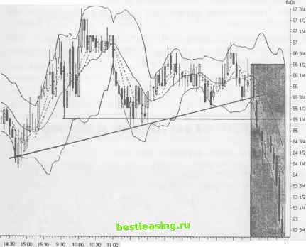 руют в течение всего последнего торгового часа, и лишь активность взаимных фондов растет только в последние 20 минут. Подобное повышенное участие институциональных инвесторов в трейдинге последнего часа усиливает ценовое движение и смешивает эмоции толпы вплоть до закрытия рынка. СМЕНА ХАРАКТЕРА РЫНКА Свинг-трейдеры планируют свои финальные позиции в течение последнего часа торговой сессии и концентрируют свое внимание на действующих движущих силах рынка. Этот сжатый период торговой сессии пытается не принимать в расчет никакие новости дня, также как и эмоции. В основном события развиваются в зависимости от того, что предшествовало им ранее. Трейдинг последнего торгового часа может характеризоваться и небольшим волнением, если сессия в целом носила спокойный характер с преобладанием бокового ценового диапазона. Однако, если конфликтующим силам рынка необходима финальная развязка или наличие сильной тенденции, то ценовое движение приобретет характер хаотических колебаний с расширяющимися диапазонами баров. Последний торговый час освобождает акции от воздействия арбитражем, связанным с кредитным рынком, и позволяет арбитражу фьючерсов на индексы определять ценовое движение. Данный третий импульс рыночных часов указывает также на то, что наступило время принятия решений в отношении тех многочисленных торговых стратегий, которые были задействованы в предшествующие часы сессии. И участники рынка должны мудро распорядиться этим временем. Тенденции, которые развиваются в первые 20 минут последнего торгового часа, имеют свойство резко затухать в 3:30 p.m. ЕТ, а прогнозируемость ценового движения сводится к нулю, как только стратегии закрытия полностью овладевают рыночным пространством в последние 20 минут регулярной сессии. Участники рынка тщательно изучают состояние рынка в течение 15 минут, предшествующие 3:00 p.m., с целью обнаружить сильный моментум, способный предопределить направление движения цены в последний час биржевой торговли. И хотя этот короткий промежуток времени, как правило, сохраняет покупательские настроения, он может также привести и к значительным распродажам акций. Определите спрос, наблюдая за тиками и соотношением растущих в цене акций к акциям, цены на которые падают (advance/decline). Для выявления эмоционального настроя толпы (взрыва энтузиазма или нарастания страха) воспользуйтесь экраном котировок Level 2, а также исследуйте рыночное время и объем продаж. Если эти показатели сохраняют спокойный характер в течение этой важной фазы, это говорит о том, что рынок лишен какой-либо направленности. В такой рыночной ситуации может быть получен очень эффективный сигнал, который в большинстве случаев игнорируется рыночной толпой. Свинг-трейдеры, которые в течение всей торговой сессии ориентированы на покупку упавших в цене акций и продажу акций, сильно поднявшихся вверх, должны приспособиться к работе в финальный час сессии и стать последователями тенденций рынка. Наиболее вероятное развитие событий подразумевает продолжение внутридневной тенденции в последний час биржевой торговли и ее перерастание в открытие следующего дня. Акции, готовые к коротким продажам и находящиеся на своих новых вершинах, либо акции, подвергшиеся сильному натиску продаж, - обе эти категории эмитентов приводят в действие сп