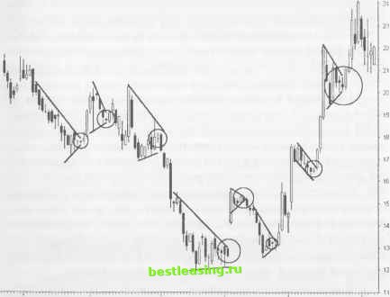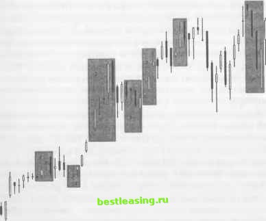 РИСУНОК 9.2 Зона застоя выстраивает визуальное напряжение, которое предугадывает ее максимальные результаты. Большая часть ценовых движений совершает рывок, когда диапазон начинает резкое движение против превалирующего тренда или в середине ценовой модели, где рынок лежит в боковом диапазоне. Обратите внимание, каким образом акции Ross Stores чередуют быстрое изменение цены с движением в направлении контртренда, который применяет сжатый установочный набор coiled spring перед его появлением. Daily (Right) HOST- ROSS STORES Bar 200D ![]() Nov Dec Jan Feb Mar Apr RealTick® ©1986-2000. Все права защищены. Используется с разрешения Townsend Analytics, Ltd. Ценовые модели, появляющиеся во временных рамках, на порядок меньших искомых, выявляют точки входа в эффективные торговые позиции. Зона застоя, расположенная между сильными ценовыми подъемами, часто представляет собой волну ABC, противодействующую тренду. Более осторожные трейдеры обязательно исследуют ценовое движение и во временных рамках, на порядок больших тех, в которых был обнаружен данный уста- новочный набор. Более длительные уровни поддержки/сопротивления могут либо ограничить, либо свести на нет импульс, если тенденция в более длительных временных рамках противоположна по направлению текущему трейду. И наоборот, координация трейда в нескольких временных диапазонах увеличивает вероятность успеха и оперативно реагировать на динамичные результаты трейда. Если позволяют условия, используйте узкие диапазоны ценовых баров на внутридневных графиках. Торговый объем должен указывать на высокую ликвидность при каждом тике - тогда можно анализировать появляющийся установочный набор. Это не относится к акциям с самыми высокими торговыми объемами на каждый текущий день. Так как анализ краткосрочной позиции необходимо проводить в режиме реального времени, при исследовании ценового движения большее внимание уделяйте зонам застоя, а не комплексному сканированию. Эффективные установочные наборы появляются и на 5-минутных, и на 60-минутных ценовых графиках, но не следует принимать во внимание их появление на 1-минутных графиках. Убедитесь в том, что появление установочного набора совпадает по времени с тиками, с колебаниями индексов или с важными уровнями цены. Затем, прежде чем открыть позицию, перейдите к рассмотрению ценового графика во временных рамках, на порядок больших тех, в которых появился установочный набор, и получите подтверждение на благоприятные условия для трейдинга. Количество ложных сигналов растет с сокращением времени удержания позиции. Лучшая краткосрочная стратегия по установочному набору coiled spring полностью исключает исследование графика по 5-минутным графикам и подразумевает применение 60-минутных и более длительных ценовых графиков. Но если происходит схождение других факторов, NR7 обеспечивает ценным перекрестным пересечением для очень краткосрочных внутридневных установочных наборов. Торгуйте по моделям coiled spring при наличии высокой ликвидности акции. Время от времени один из основных индексов Nasdaq 100 достигает торгового объема порядка 50 млн. акций в день. Индивидуальные акции частично перенимают основные характеристики индекса, каждый тик которого предлагает благоприятные условия для каждой акции, сообразно ее доли участия в изменении индекра. НЕМНОГО ПОДРОБНЕЕ ОБ АНАЛИЗЕ ДИАПАЗОНА ЦЕНОВЫХ БА