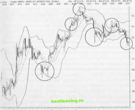 определяют существенные ценовые движения в неспокойном рынке, в начале формирования новой зоны застоя, но, если данная модель появляется после падения волатильности, она указывает на то, что рынок готов вступить в цикл позитивной обратной связи. Велика вероятность того, что сильное ценовое движение будет развиваться в направлении, противоположном выставленным stop-ордерам. Оцените силу такого энергичного движения по длине свечи и торговому объему, соответствующему ей. Небольшие прорывы цены с небольшим количеством участников рынка вскоре приведут рынок в состояние бокового тренда. Что же касается длинноногих дожей , которые сопровождаются высокими объемами, то при их появлении речь может идти о немедленном вертикальном прорыве цены в противоположном направлении. При этом зона застоя завершится без образования пустой зоны или иной спокойной соединительной фазы рынка. Модель крест харами объединяет модель день с уменьшающимся диапазоном с эффективностью дожи . Эта специфическая модель появляется, когда тело свечи харами имеет совпадающие цены открытия и закрытия. Когда такая свеча умещается в диапазон предыдущей длинной свечи, она может представлять собой важную точку разворота рынка. Ищите на графиках тени длинноногих дожи , они указывают на высокую вероятность сильного разворота тенденции. Перейдите к изучению ценового графика во временных рамках, на порядок меньших тех, в которых появилась данная модель. Здесь она часто предстает в виде вложенной модели разворота Двойное Дно . Цена продвигается к новому минимуму или к новому максимуму, но быстро отскакивает баром закрытия обратно к уровню поддержки/сопро-тивления. Хотя лучше всего данная модель способна прогнозировать развороты тенденций, применение ее в роли установочного набора неудавшейся модели также очень популярно. Полностью игнорируйте сигналами, полученными от свечных моделей, в условиях тонкого или бокового рынка. Тщательно фильтруйте торговый объем при составлении реестра акций (watch list), чтобы не подвергать ненужные акции анализу. Отдельные свечи лишаются своей значимости в подобных условиях, поскольку широкий спрэд, шумы и различные манипуляции порождают множество ложных сигналов. Исследуйте также недельные или более длительные ценовые графики, но только с целью определе- ния своей инвестиционной задачи. Переходите к другим временным инструментам, если предпочитаете рассматривать данные акции в качестве лучших кандидатов для краткосрочного трейдинга. ИНОЙ ВЗГЛЯД НА FINGER FINDER Агрессивные трейдеры могут осуществлять короткие продажи акций при появлении дожи на вершине ценового диапазона и открывать длинные позиции при обнаружении дожи на дне диапазона. При этом stop-ордера должны выставляться за пределами диапазона свечи, потому что любой прорыв цены будет противоречить сигналу разворота. Установочные наборы с максимальным потенциалом доходности чаще всего появляются несколькими свечами позже. Перед формированием значительного движения цены большая часть новых ценовых разворотов подвергается хотя бы одному тестированию. Как только появится модель finger finder , ищите Двойную Вершину или Двойное Дно , которые формируются во временных рамках, на порядок меньших исходных. Так завершается формирование модели разворота и находится точка вход