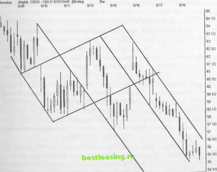 Трендовые пинии и каналы дают сигналы основных уровней поддержки/сопротивления (S/R) в активном рынке. Широко применяемые для анализа графиков трендовые линии состоят из векторов, соединяющих две соседние точки пиков или спадов цены. Однако этот упрощенный вариант построения трендовой линии не отличается большой надежностью. Возьмите три (или более) точки спада (или пиков) и дочертите эту трендовую линию - это и будет основной границей ценового движения. Как и в рассмотренных ранее случаях, долгосрочные трендовые линии более устойчивы, чем краткосрочные. Сильные трендовые линии могут сохраняться десятилетиями. Начертите прямые линии, проходящие через три (или более) точки пиков цены и через три (или более) точки спада цены, независимо от того, куда движется рынок, вверх или вниз. Две (или более) трендовые линии, параллельные друг другу, формируют ценовой канал. Для его построения необходимо наличие, по крайней мере, четырех точек: две точки на уровне поддержки и две -на уровне сопротивления. Агрессивные трейдеры могут строить ориентировочные ценовые каналы, используя только три точки, и растягивать ожидаемые линии без подтверждения недостающей точкой. Используйте эти растянутые линии только для идентификации точек разворота, иначе будьте готовы к тому, что ваш депозит может быть подвергнут большому риску. Многие свинг-трейдеры допускают тот факт, что разрыв трендовой линии или ценового канала обозначает начало новой тенденции. Это допущение не является верным. Разрыв трендовой линии означает завершение предыдущей тенденции и начало фазы бокового диапазона. Таким образом, рынок имеет возможность резюмировать предыдущий тренд до того, как приобретет стабильность. Крайне редко, но случается, что разрыв трендовых линий сочетается с выходом шокирующих новостей, и тогда стартует тенденция противоположного направления. Трейдинг на разрывах (см. Главу 11) представляет собой один из примеров этого феномена. Разрыв трендовых линий и линий каналов индуцирует ценовое движение по направлению к следующему уровню. Когда нет навязывающей движение силы, разрыв может быть ложным, и в результате цена вернется к исходной линии, заловив при этом толпу в ловушку. Беспорядочное движение цены и нарушение ценовых РИСУНОК 2.2 На ценовом графике строятся линии тренда и параллельные линии ценовых каналов. Обратите внимание на то, как 60-минутные свечи на графике CSCO образуют многочисленные каналы за короткий 9-дневный период времени. Часто каналы генерируют гармоничные уровни, порождающие дополнительные параллельные линии между основными границами. ![]() 11 I 11 I 1) I 11 111 I I 11 I 11 1 I м 1 11 I I1 I 1 11 1 11 11 1 I 1200 900 12.00 500 1200 300 1200 900 1200 500 1200 900 1200 900 1200 900 1200 1500 RealTick® ©1986-2000. Все права защищены. Используется с разрешения Townsend Analytics, Ltd. моделей - это атрибуты современных финансовых рынков. Используя знания технического анализа, инсайдеры регулярно проталкивают цену акции мимо уровня поддержки/сопротивления с тем, чтобы инициировать большое число стоп-ордеров и увеличивать торговые объемы. И такая борьба продолжается до тех пор, пока не иссякнет горючее , и тогда цена спокойно возвратится к своему предыдущему уровню. 1 2 3 4 5 6 7 [ 8 ] 9 10 11 12 13 14 15 16 17 18 19 20 21 22 23 24 25 26 27 28 29 30 31 32 33 34 35 36 37 38 39 40 41 42 43 44 45 46 47 48 49 50 51 52 53 54 55 56 57 58 59 60 61 62 63 64 65 66 67 68 69 70 71 72 73 74 75 76 77 78 79 80 81 82 83 84 85 86 87 88 89 90 91 92 93 94 95 96 97 98 