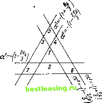(которые соответствуют границам для дополнительных условий (47.5)) расположены по отношению к фундаментальному треугольнику на рис. 49 так, как это показано на рис 50. Они разбивают фундаментальный треугольник на семь областей, каждую из которых можно охарактеризовать теми двухэлементными множествами S, которые являются эффективными в этой области в смысле (47:5). Список этих множеств приводится в табл. 25. Теперь мы можем вычертить аналог рис. 33, на котором для каждой точки фундаментального треугольника указаны заштрихованные области х), которые она доминирует. Это сделано на рис. 51 (см. табл. 25) в соответствии с (47.5). Необходимо рассматривать отдельно каждую из семи областей рис 50, а каждую заштрихованную область рис 51 нужно распространить на весь фундаментальный треугольник. Из рис. 51 ясно, что никакая точка области 2 не может доминироваться точкой, лежащей вне этой области 2). Следовательно, условие (44:Е:с) п. 44.7.3, которое характеризует решение V для Е (е0), т. е. для всего фундаментального треугольника, должно также выполняться для части V, содержащейся в области 2, если рассматривается область 2 (вместо всего фундаментального треугольника, т. е. Е (е0)). Но область 2 есть треугольник, аналогичный фундаментальному треугольнику на рис. 32, за исключением коэффициента пропорциональности 1--- 3). Сравнение рис. 33 с областью 2 рис. 51 показывает, что условия доминирования те же самые. 47 Л .2. Следовательно, если ввести множи- ![]() ![]() Рис. 50. Рис. 51. то все рассуждения пп. 32.1.3-32.2.3 л %е0 тель пропорциональности 1-- применимы к части V содержащейся в области 2. Следовательно, часть V, содержащаяся в 2, должна быть либо мно* жеством ° °, либо множеством-----, которые указаны на рис 52. (Пря- *) Исключая их границы. 2) Включая ее границу. мая-----может находиться в любом положении ниже точек °°). Однако для того чтобы получить все решения, нужно произвести все перестановки элементов 1, 2, 3, т. е. треугольник с прямой-----повернуть на 0°, 60° и 120°. (См. п. 32.2.3; множество °0° соответствует (32:В), а прямая -----соответствует (32:А).) После того как часть V, содержащаяся в области 1, найдена, мы перейдем к нахождению остальной части V. Так как V есть решение, эта остальная часть V должна лежать в области, которая не доминируется частью V, содержащейся в области 1. Сравнение рис. 52 с рис. 51 показывает, что эта недоминируемая область следующая. Для множества °0° она состоит из трех заштрихованных треугольников рис. 53, для ггрямой -----она состоит из трех заштрихованных треугольников на рис. 54 *). Из рис. 51 ясно, что никакая точка ни в одном из этих треугольников не может доминиро-ваться точкой из другого треугольника 2). Следовательно, условие (44:Е:с) п. 44.7.3, которое характеризует решение V для Е (е0), т. е. для всего фундаментального треугольника, и которое выпол- ![]() Рис. 53. Рис. 54. нено также для части V, содержащейся в области 1, если рассматривается эта область (вместо всего фундаментального треугольника, т. е. Е (е0)), утверждает в точности следующее: (44:Е:с) выполнено для части V, содержащейся в каждом заштрихованном треугольнике, если рассматривается этот треугольник. 47.5. Случай (IV). Вторая часть 47.5.1. Рассмотрим поэтому один из этих треугольников; обозначим его через Т. Его положение щ фундаментальном треугольнике 3) и 2) Положение всех этих треугольников ясно указано на рисунках, за исключением нижнего треугольника на рис. 54. Этот т